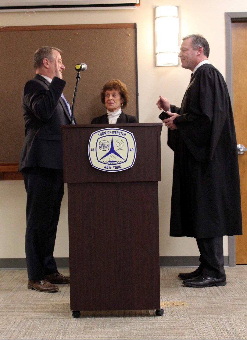 Tom Flaherty’s mother Diane held the Bible during his swearing-in.