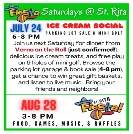 And of course, it’s all a warm-up to the annual St. Rita Fiesta, scheduled this year for Aug. 28. Stay tuned for more about that.