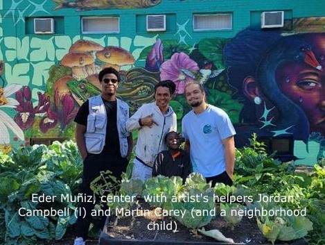 For several days recently, Webster Thomas senior Martin Carey spent many volunteer hours helping Brazilian artist Eder Muñiz create a breathtaking mural on the Montgomery Neighborhood Center on Cady St., in Rochester’s Southwest neighborhood.