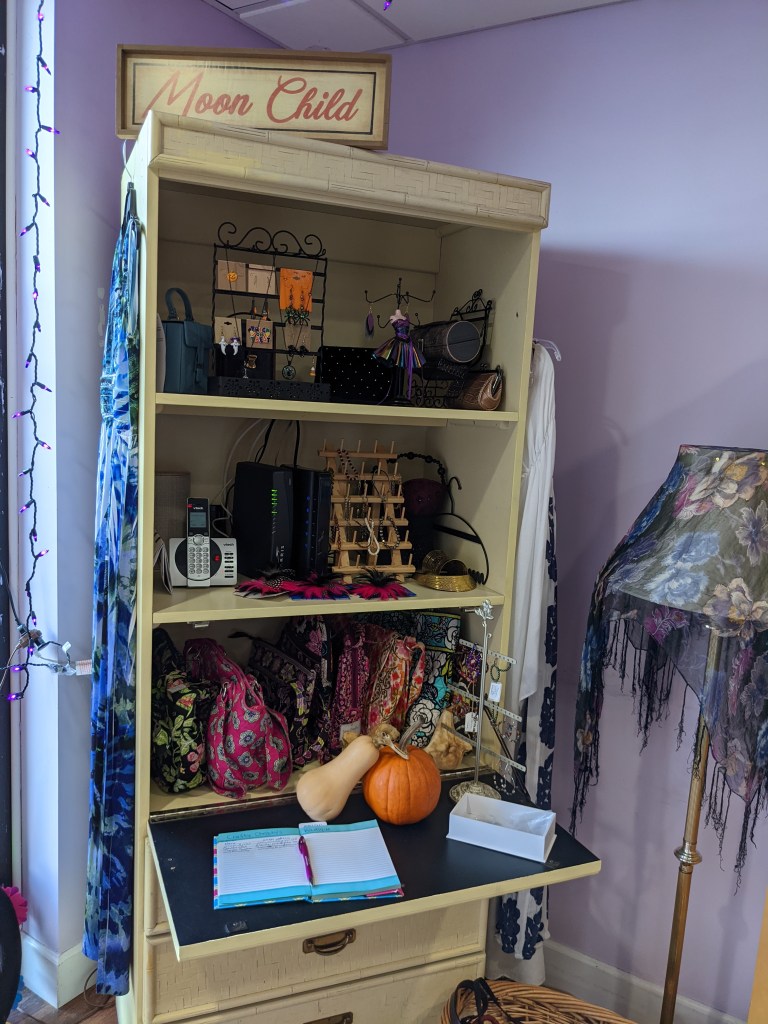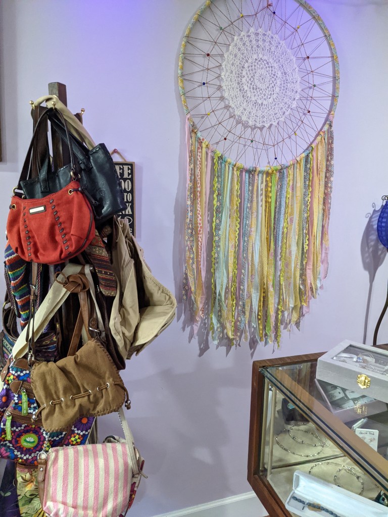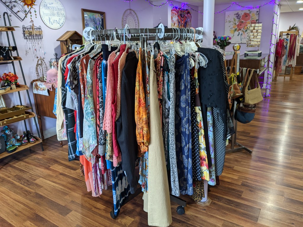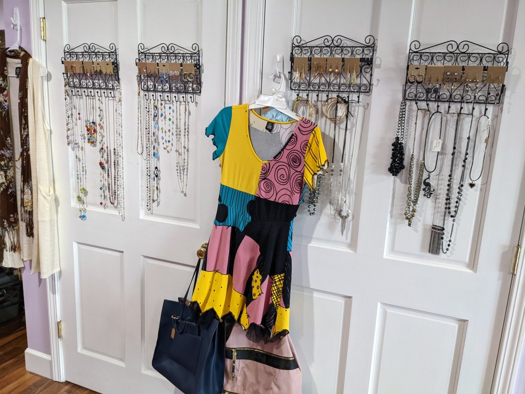 “This is a very unique boutique,” she said.”My theory is recycle, reuse, recreate. So at least 50% of what is in here is upcycled, which I made from something else. It’s what I do best. I have a knack for finding things, putting things together…. (with my) little bohemian flair.”