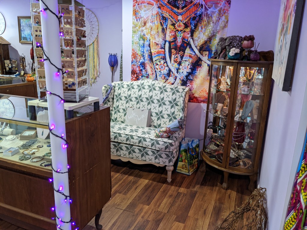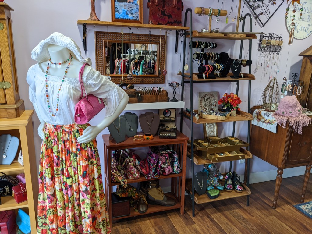 a veteran-owned business that reached out for folks looking for a pleasant place to shop, create and make new friends. (A) boutique for the flower child at heart. Beautiful jewelry, artfully decorated items, craft therapy, guest artist, and more.
