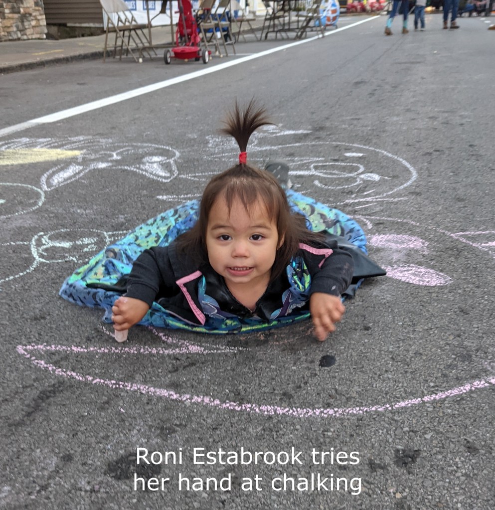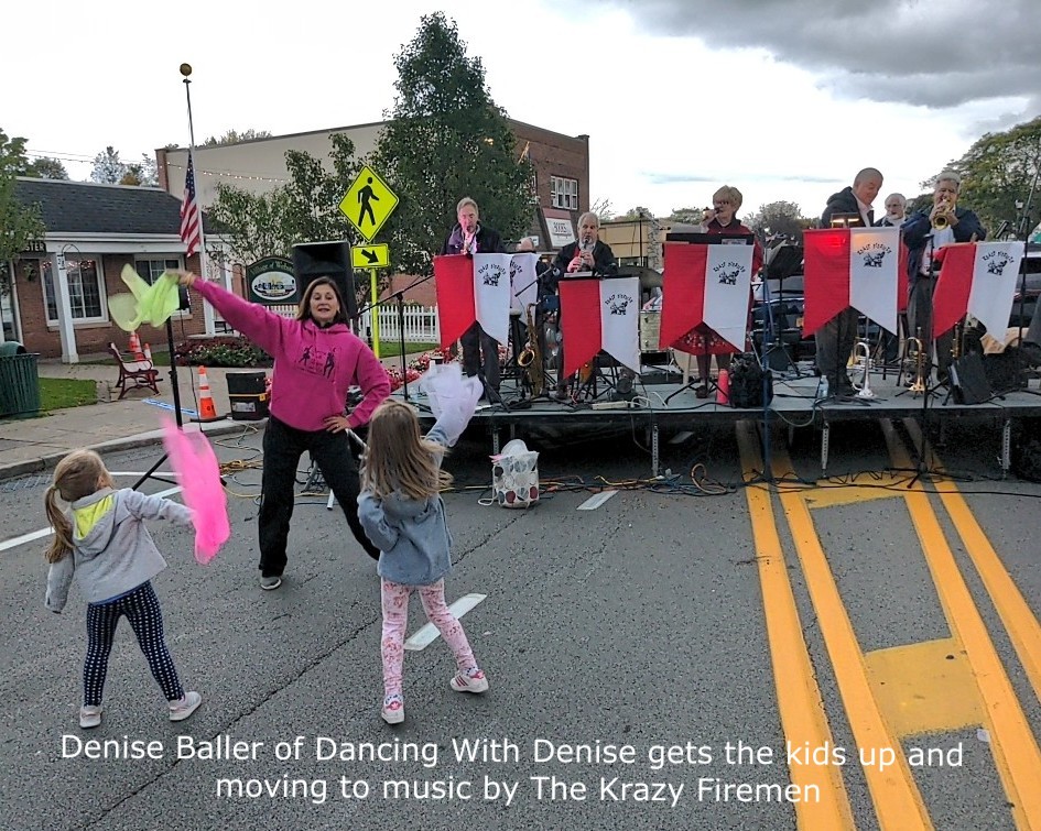But they needn’t have worried. By 5:30, West Main St. had begun to fill up with festival-goers. Children of all ages were playing with the games and chalking in the street. Denise Baller from Dancing With Denise had a whole knot of kids up and dancing to the band. Many older folks were just content to get a brat, sit at a table and enjoy the authentic German music. By the end of the evening, several hundred people had come into town to enjoy the Oktoberfest with family and friends.
