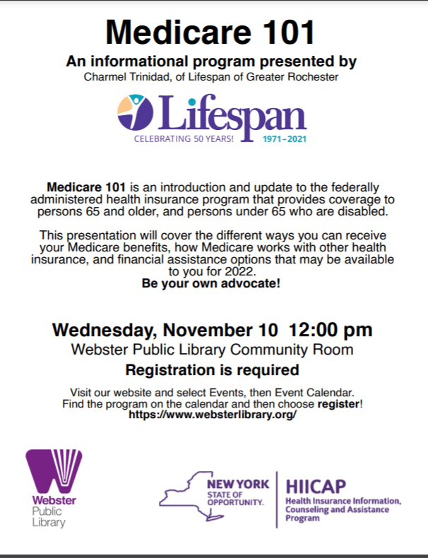 Wednesday Nov. 10, noon: Medicare 101, an introduction and update to the federally administered health insurance program