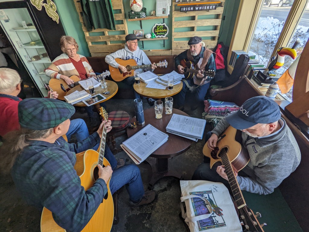 Stop into Barry’s Old School Irish any Saturday from noon to 2 p.m. and you’ll find a group of folk musicians circled around tables in the bakery side of the pub. They’re mostly playing guitars, with an occasional mandolin, banjo, bass or ukulele joining the mix. But they’re all playing, and they’re all singing, jamming to tunes we all know and filling the pub with beautiful music.