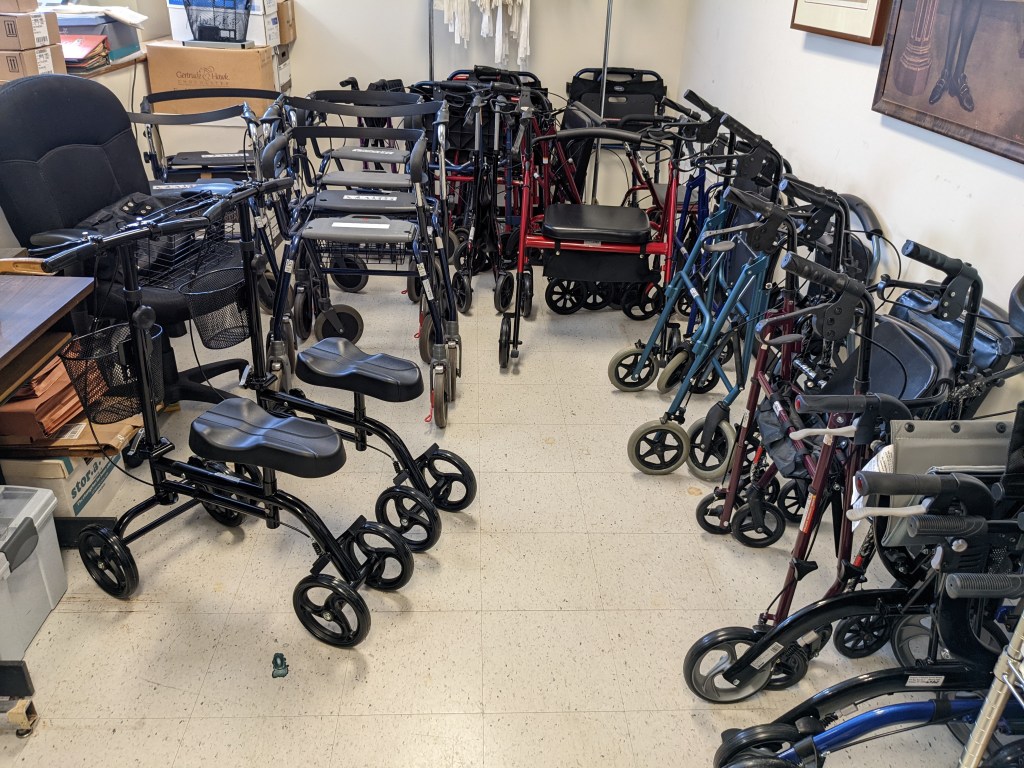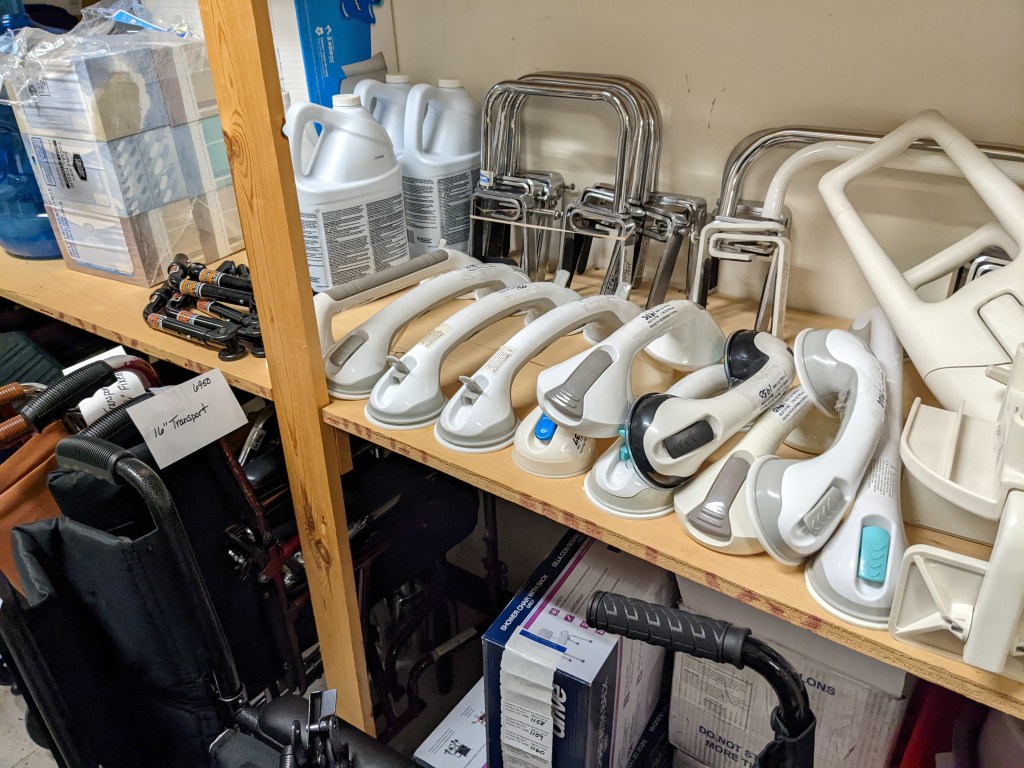 I found out about the Loan Closet when Michelle posted something about it on a local Facebook page. Apparently not a lot of people know about it, so she was trying to spread the word. That’s how I found out about it, and when I stopped in the other day, I was amazed by both the volume of equipment they offer, and the fact that it’s all loaned out for FREE.