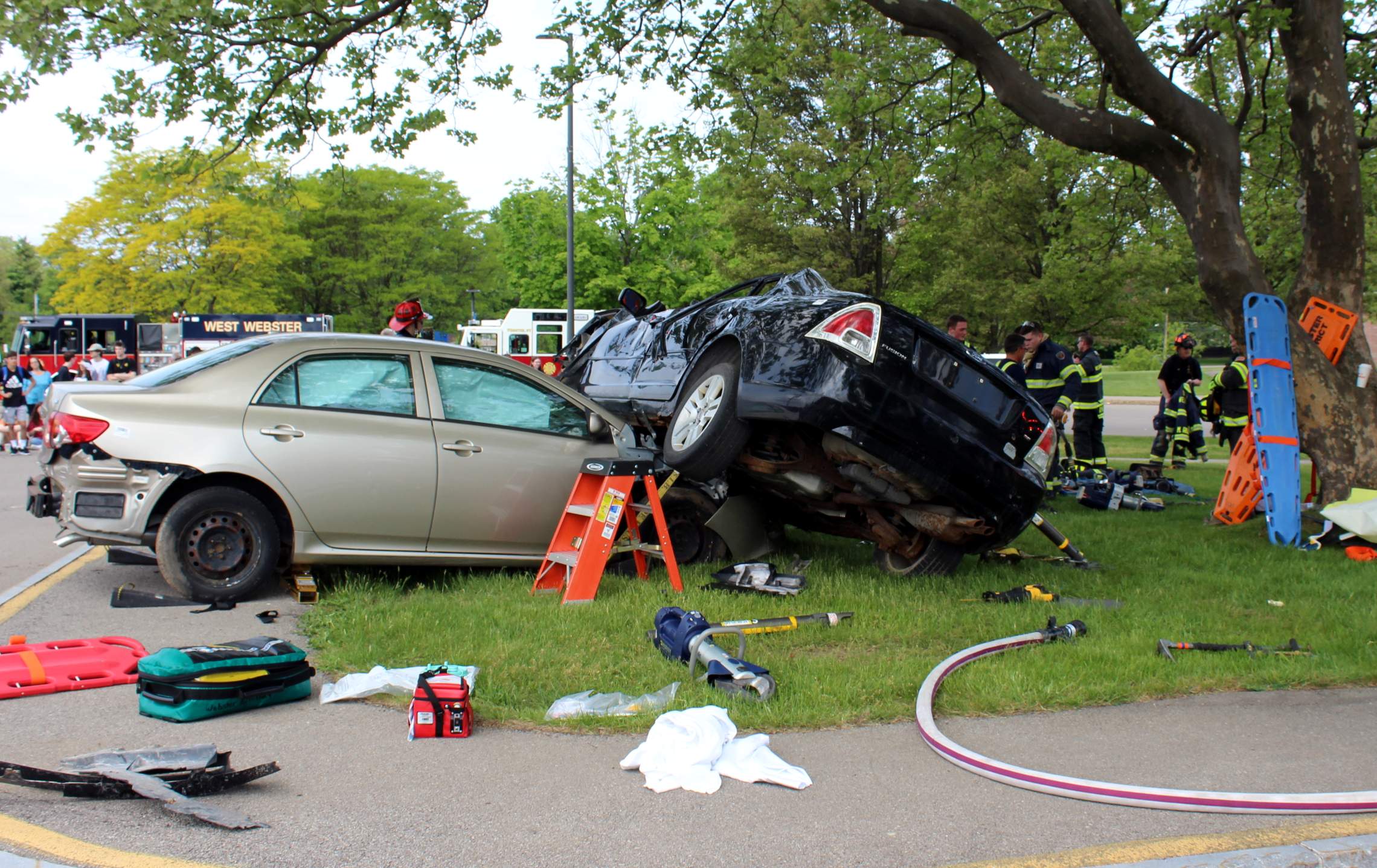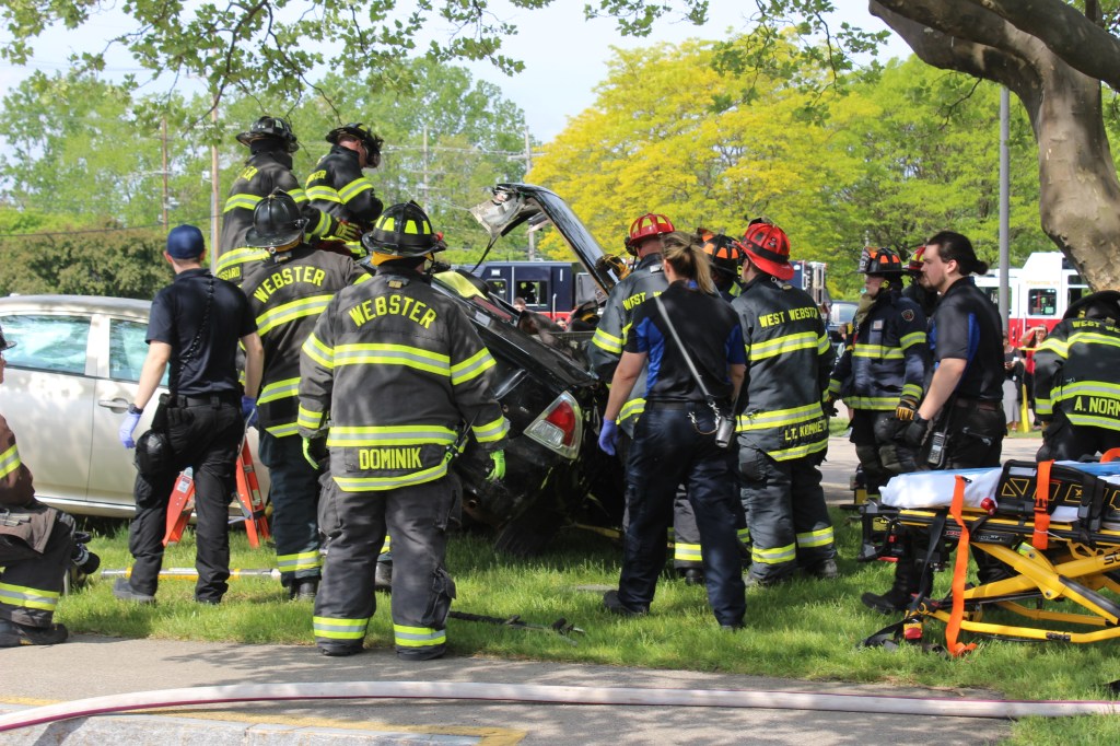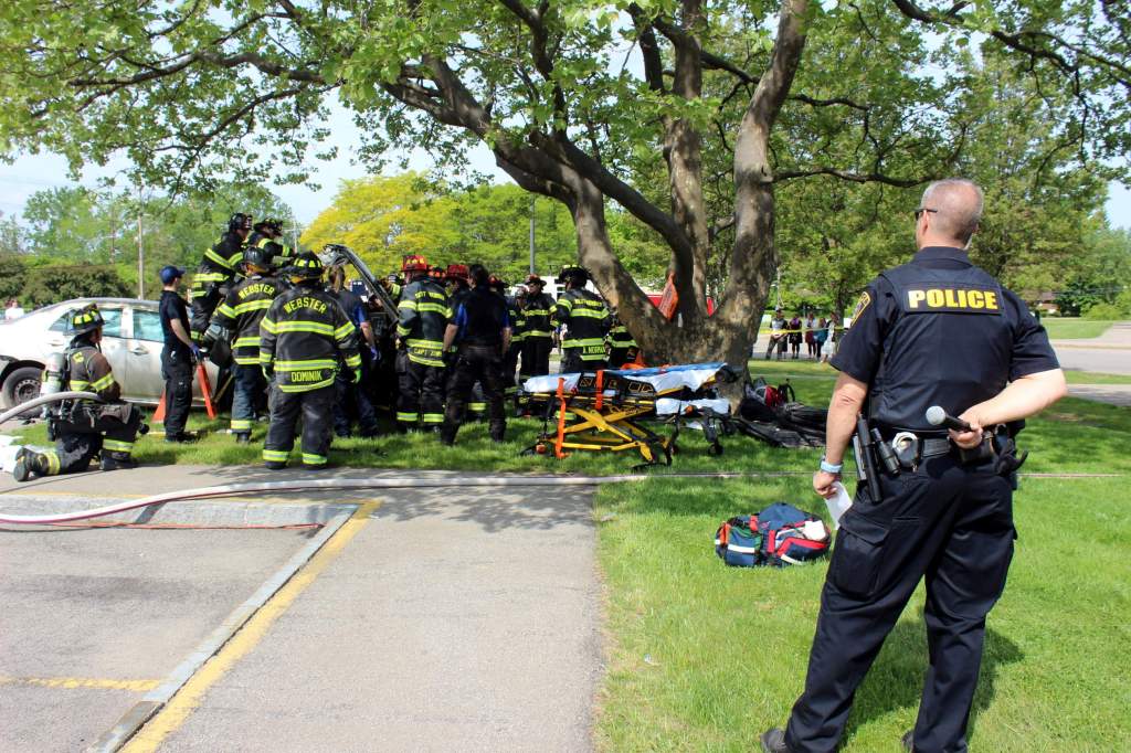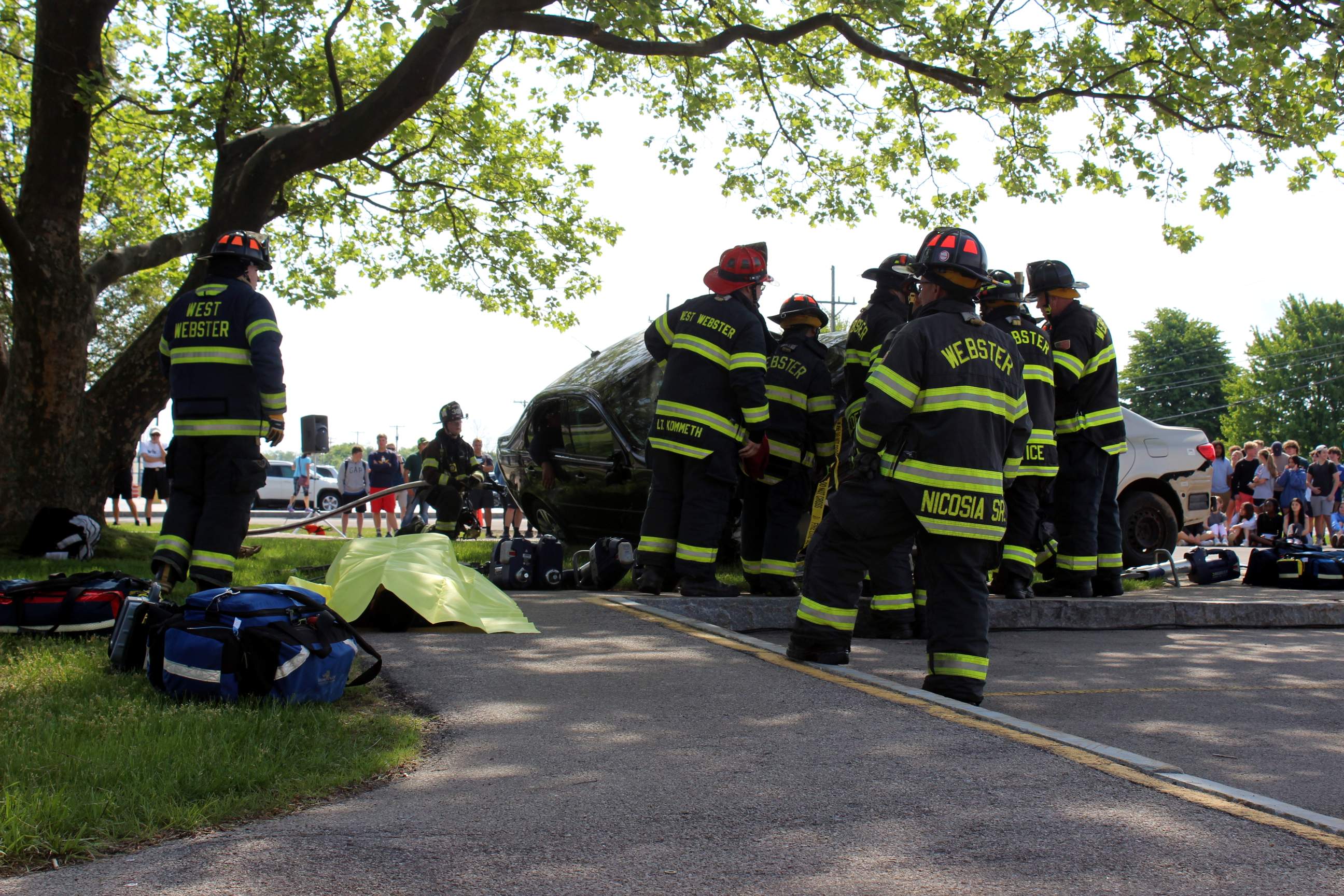 Thank you to all of the organizations who joined forces to stage this important demonstration: the Webster Police Department, Webster Volunteer Fire Department, West Webster Fire Department, Webster EMS, Northeast Quadrant ALS and Webster Central School District. Thanks also to Wilbert’s U-Pull It for donating the vehicles and Barth Towing for getting the vehicles to and from the accident scene.