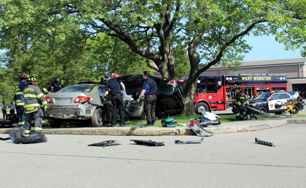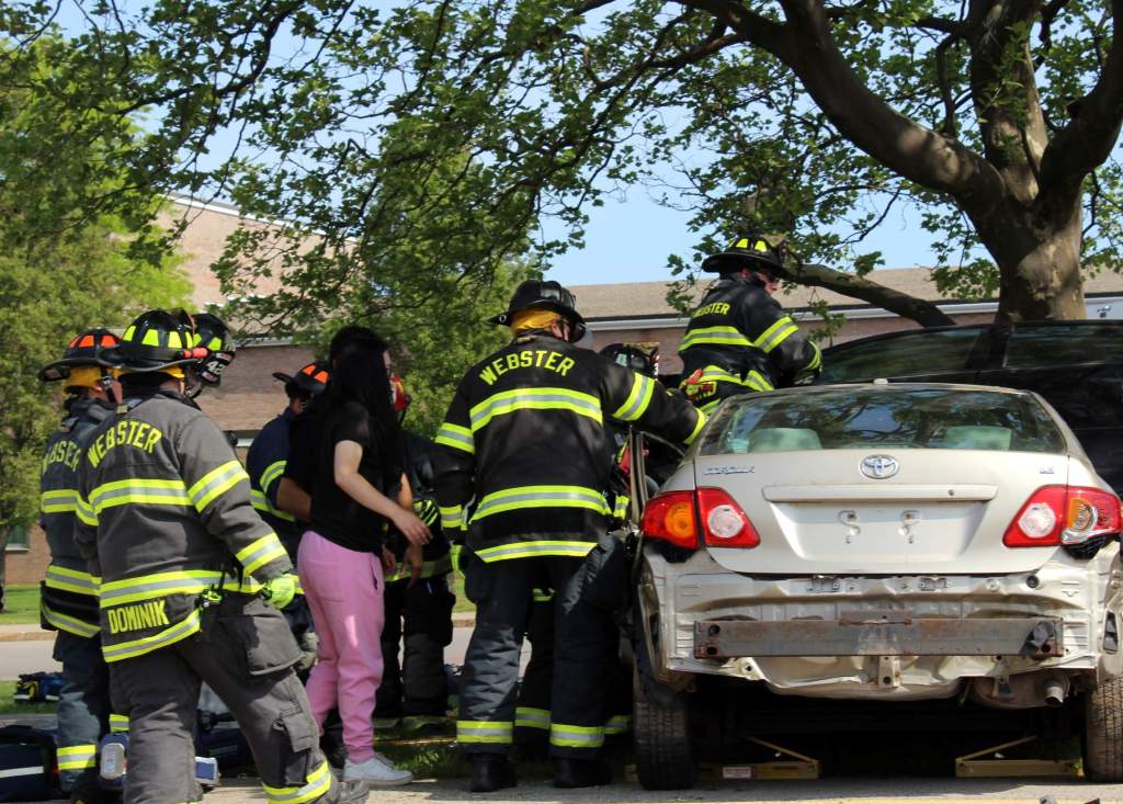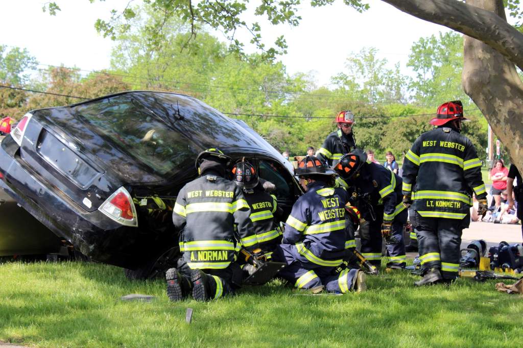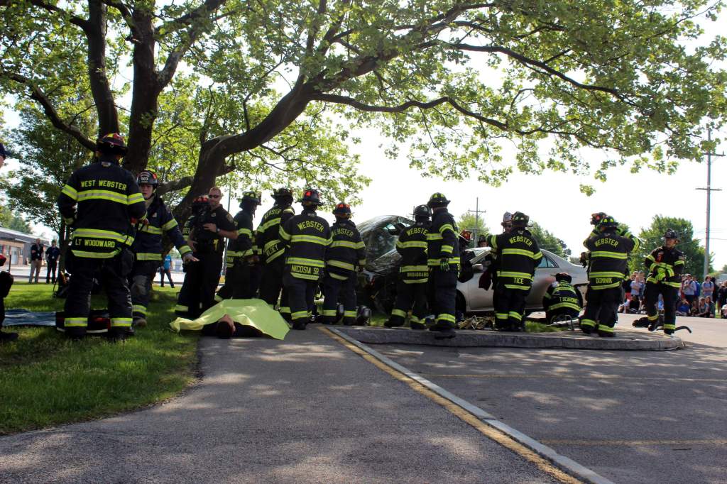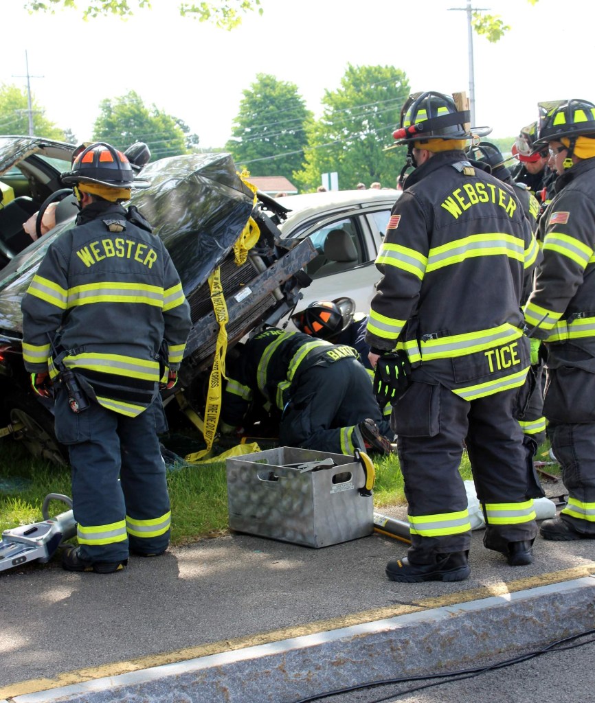 Thank you to all of the organizations who joined forces to stage this important demonstration: the Webster Police Department, Webster Volunteer Fire Department, West Webster Fire Department, Webster EMS, Northeast Quadrant ALS and Webster Central School District. Thanks also to Wilbert’s U-Pull It for donating the vehicles and Barth Towing for getting the vehicles to and from the accident scene.