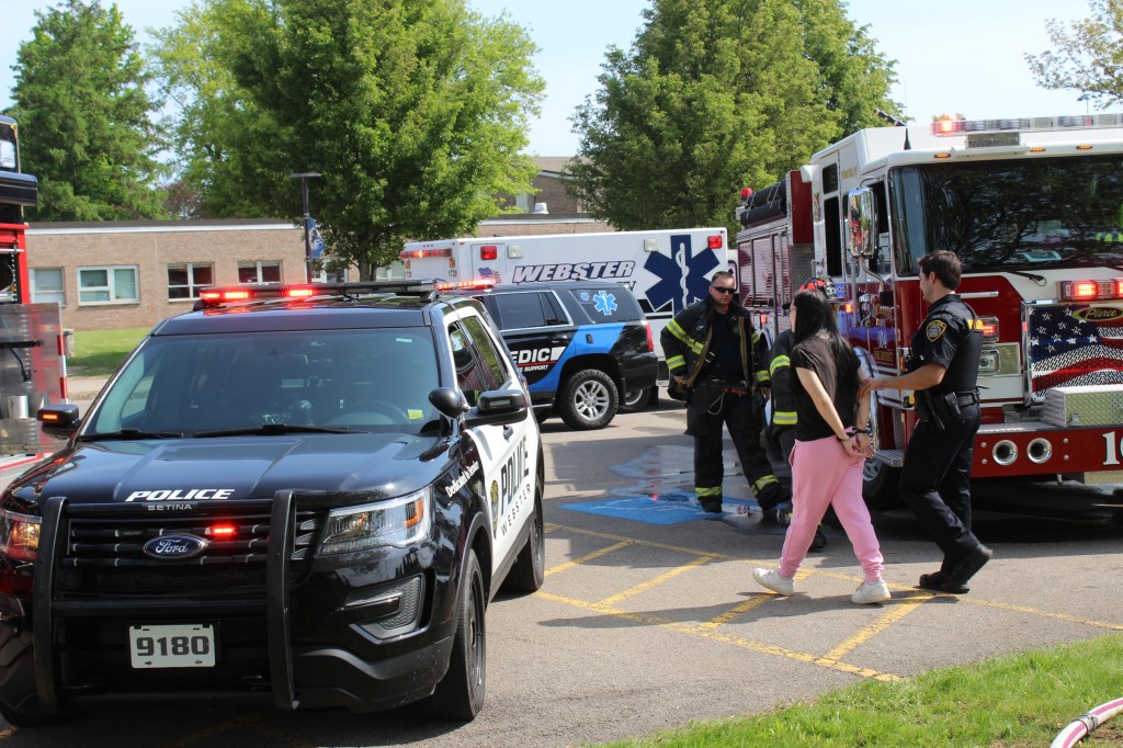 Somebody called 911, and emergency vehicles started arriving. First a police car, and then a second. Finally, after what seemed like a very long time, an ambulance, two fire trucks from West Webster, and two more from the Webster Volunteer Fire Department pulled up.