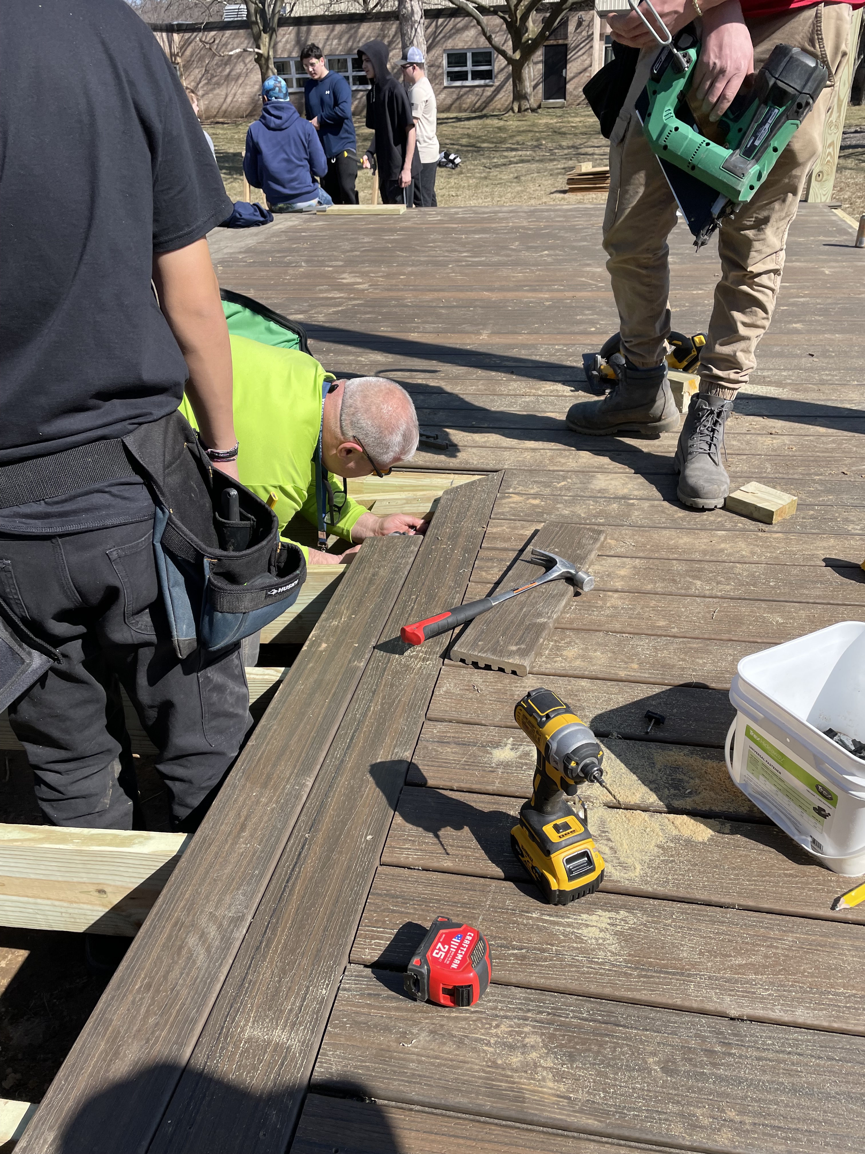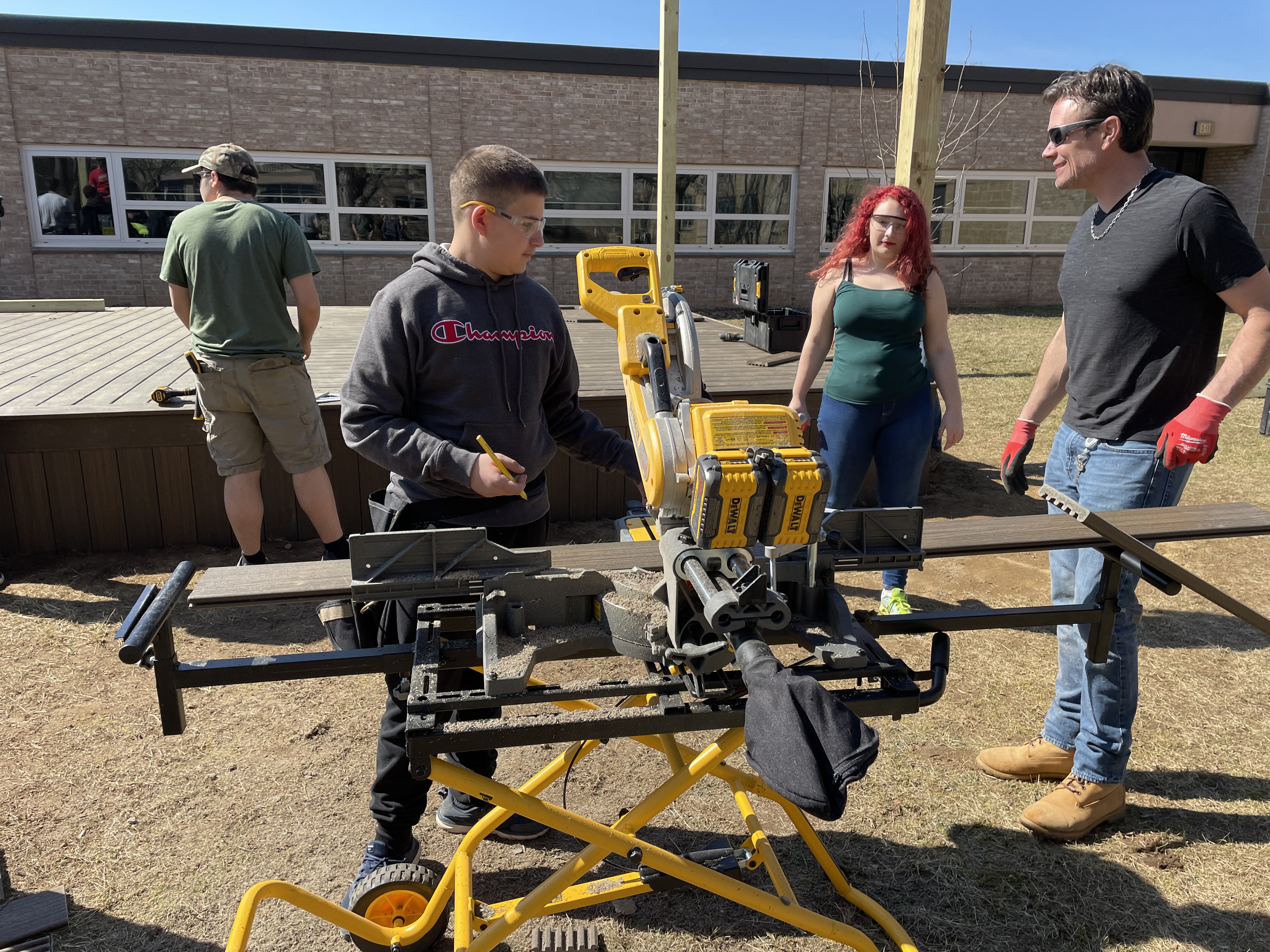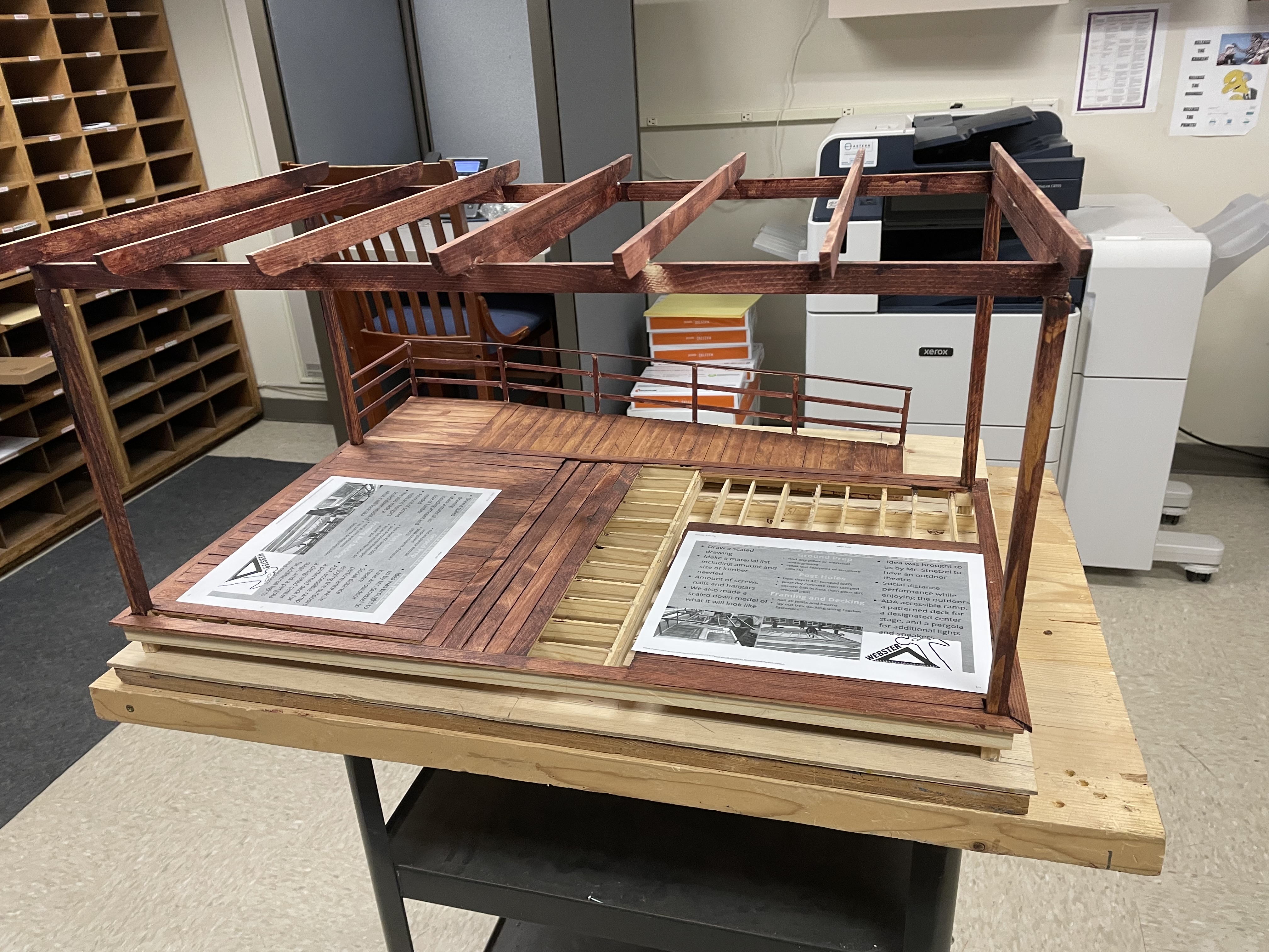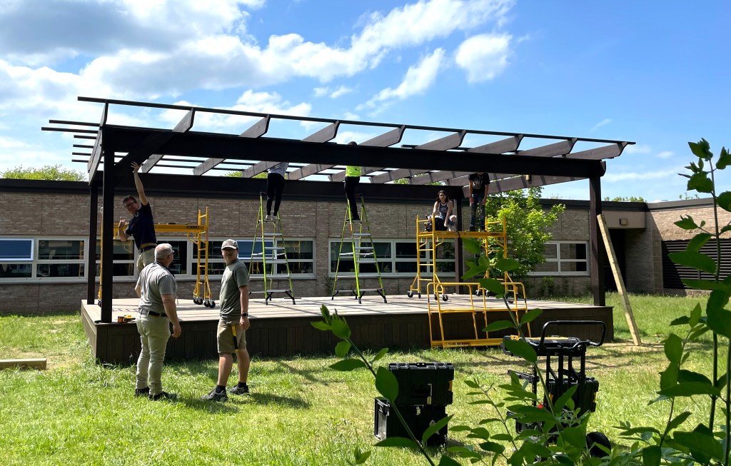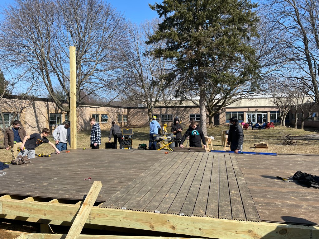 Director Mark Stoetzel and his students are very excited about the new stage. It’s been in the works for months, and is very sturdy and attractive, complete with a pergola. I’m certain the school will get a lot of use out of it in years to come. Below are a few photos from the design and construction phase.