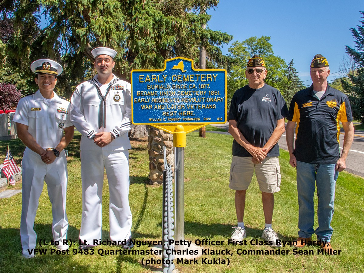 The sign is the result of almost two years of research by George Baker, Cherie Wood and Webster Town Historian Lynn Barton. It was made possible with support from the William G. Pomeroy Foundation, a Syracuse-based organization dedicated to helping communities celebrate local history and encourage historic preservation through the placement of historical markers.
