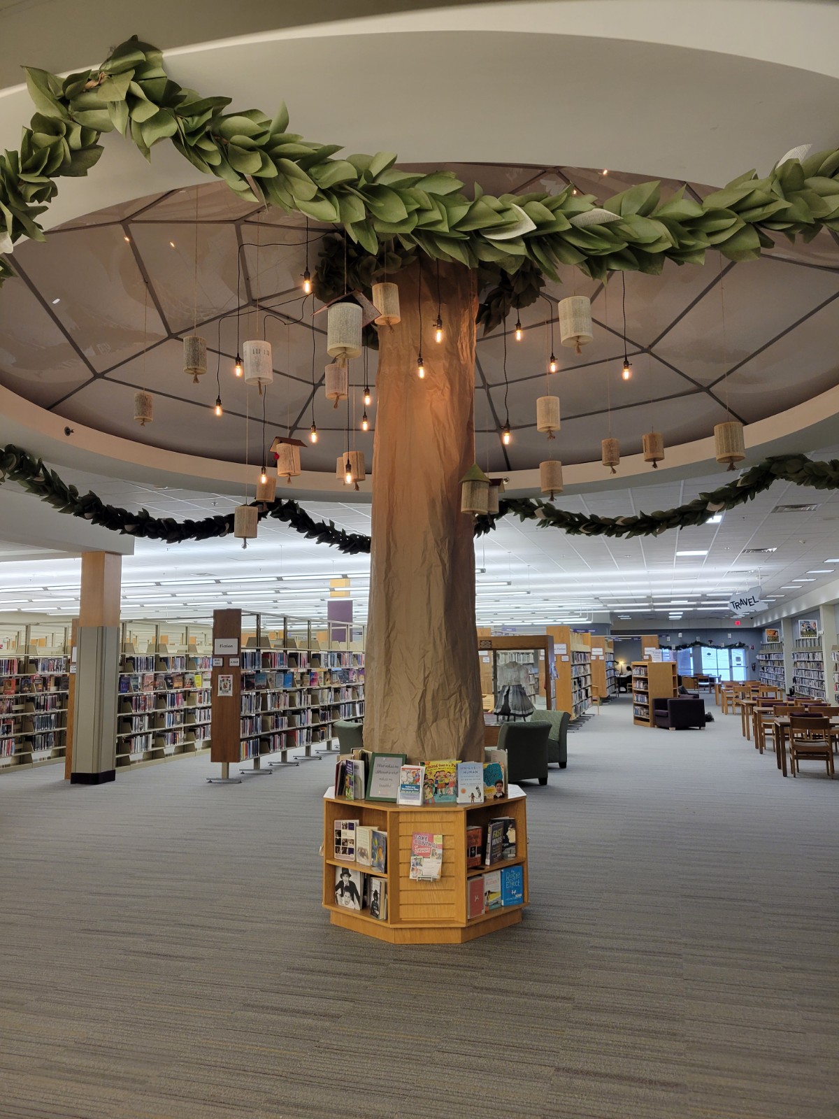 If you’re a fan of our Webster Public Library (and you should be), you probably have noticed that there’s much more to the library than just books and DVDs and periodicals and puzzles. In many respects it’s like a mini art gallery. And I’m not just talking about the local artist’s wall over by the Community Room, which regularly displays fine art and photographs from local residents. No, I’m talking about the other creative artwork hanging throughout the space (like the sea creatures in the children’s area) or growing out the floor (like the big Reading Tree in the main lobby).