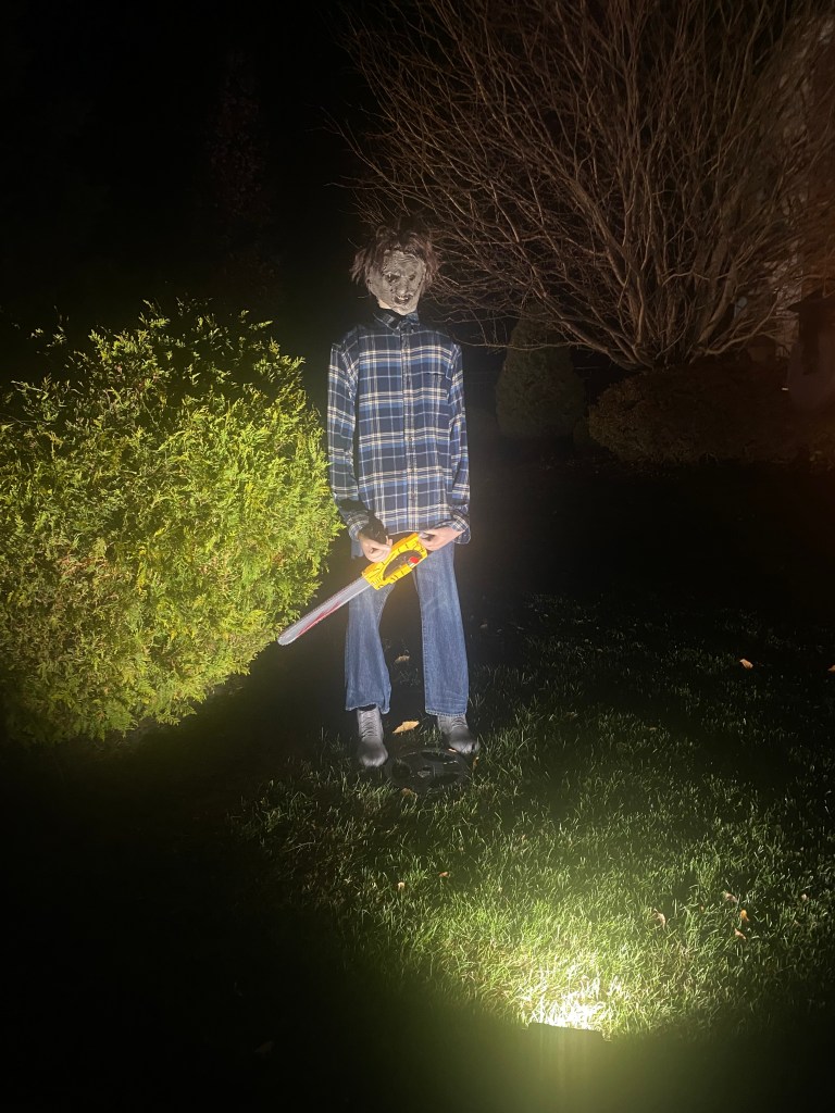 Pumpkins on Parade took place at the Webster Recreation Center on Saturday night from 7 to 8:30 p.m. If you missed the festivities, you missed one of the most enjoyable events of Webster’s Halloween season. About 700 creatively carved, illuminated jack-o-lanterns were placed along the entire one-mile long Chiyoda Trail that wraps around the back of the Rec Center, and a shorter path set up especially for toddlers and seniors. Several places on the main trail were also illuminated with strings of multi-colored lights, and a number of spooky ghosts hung from the trees.