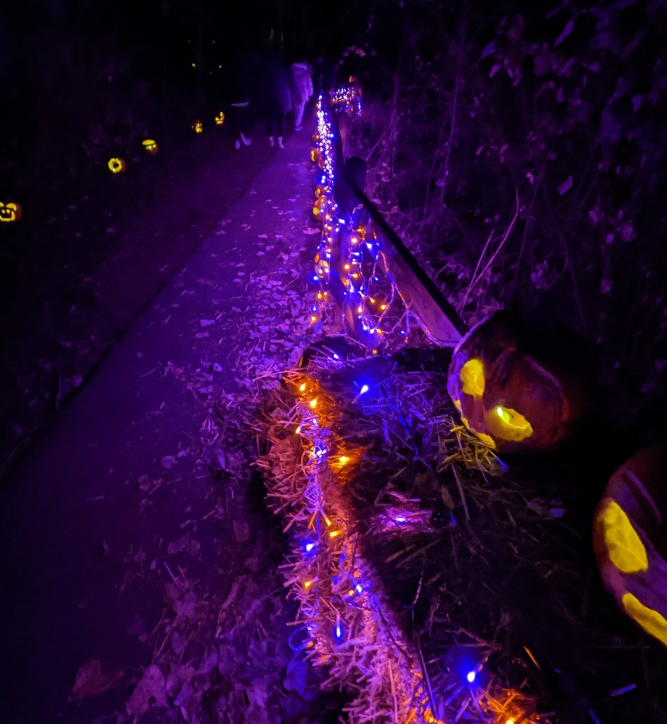 The trails themselves weren’t too different from previous years; the wide variety of jack-o-lanterns was delightful and in several places stopped a lot of people in their tracks. It was fun listening to the little kids “oooh” and “ahhh” at every new design and point out cats or spiders, or characters they recognized from their favorite shows.