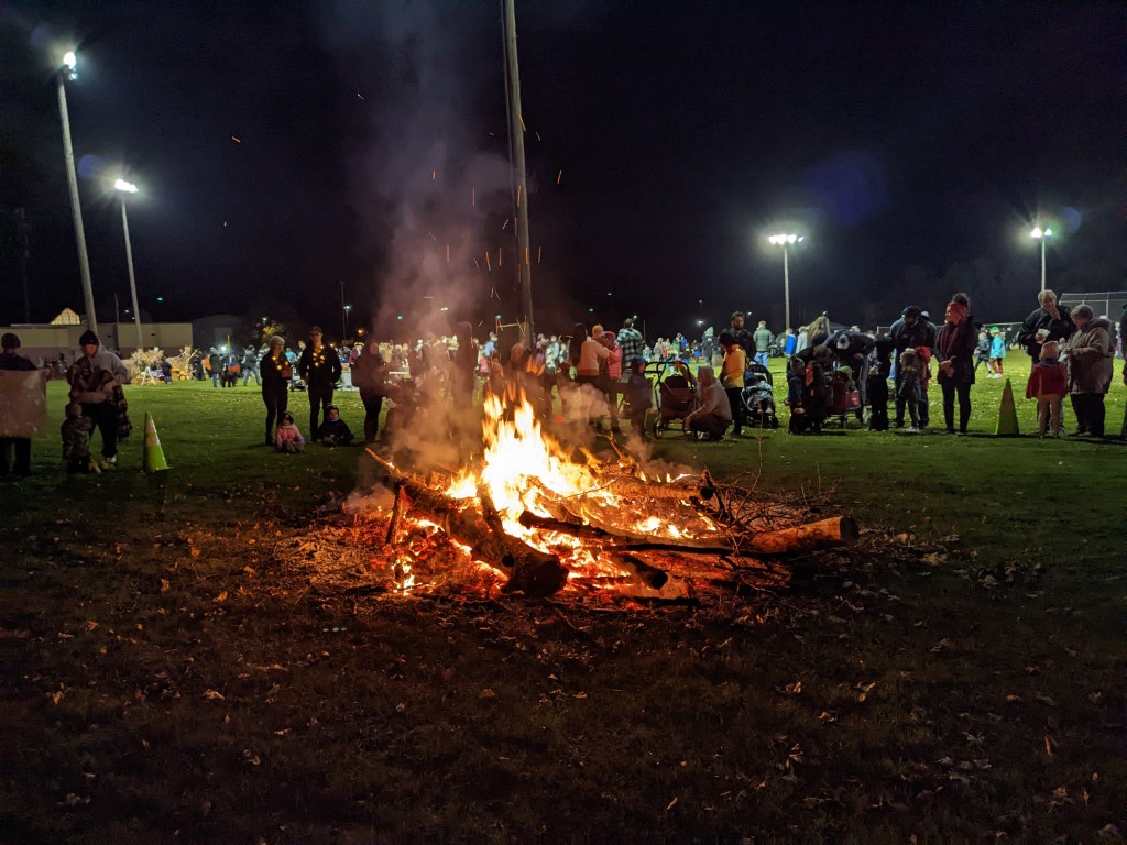 But it was the slew of new activities at the end of the trail that really made this year’s Pumpkins on Parade the best ever. In addition to the free cider and donuts for everyone (offered every year), the Rec Center folks added a whole bunch of new family activities: a hay bale maze for the little kids, a rolly-slide, a dedicated children’s activities tent, a “photo booth” and a huge bonfire.