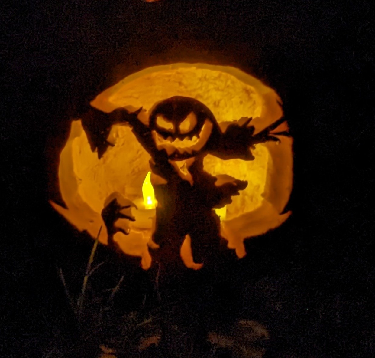 The trails themselves weren’t too different from previous years; the wide variety of jack-o-lanterns was delightful and in several places stopped a lot of people in their tracks. It was fun listening to the little kids “oooh” and “ahhh” at every new design and point out cats or spiders, or characters they recognized from their favorite shows.