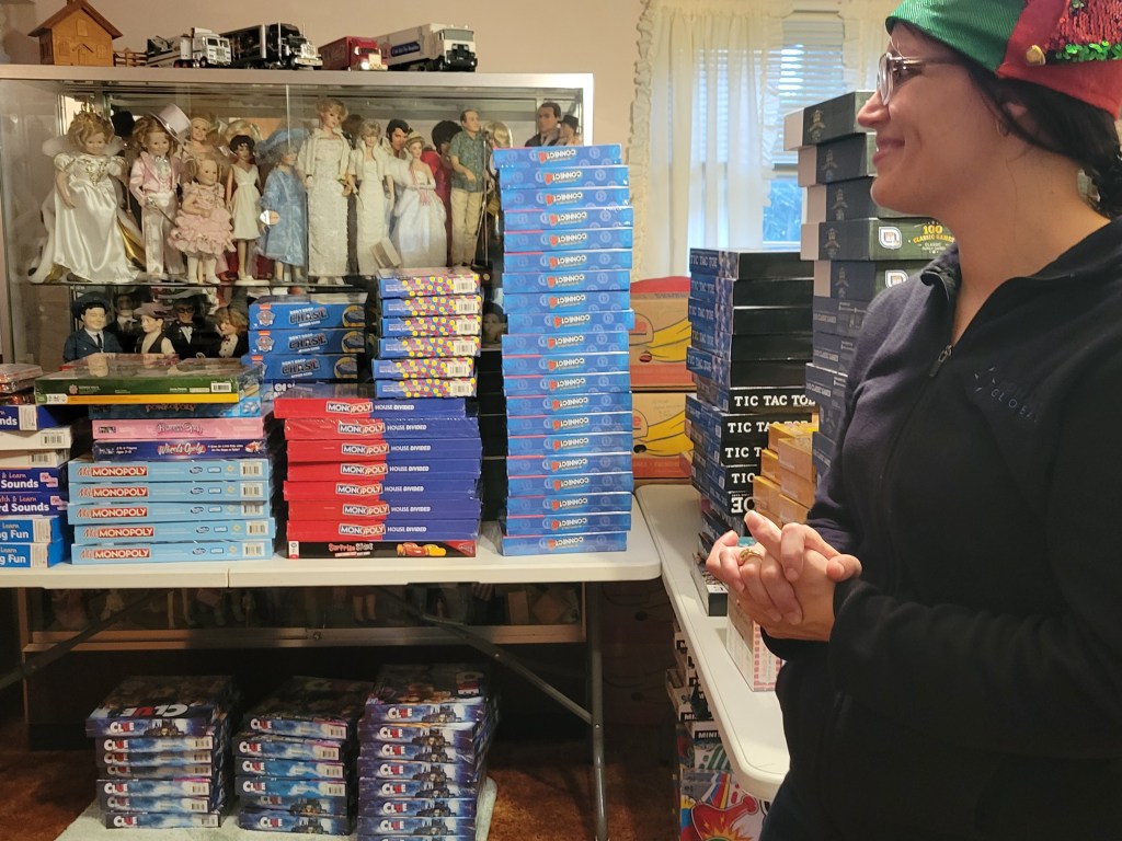 On my my recent visit a few days ago, Florence told me that a donation she’d received on Tuesday night had put her over her goal, just in time for her volunteer “elves” to swoop in and start packing the toys and clothing items for delivery to agencies all over the Rochester area.