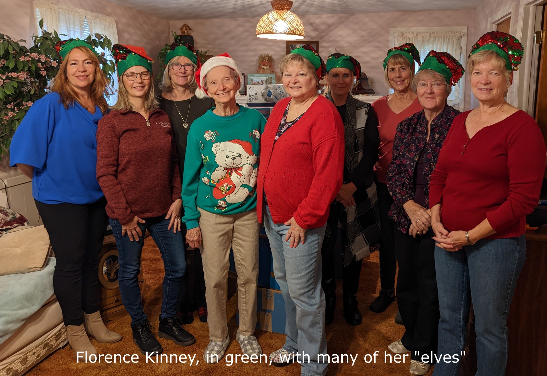 Florence Kinney is the driving force behind a grassroots ministry which she calls “Santa’s Workshop,” dedicated to bringing presents to children who might not get many gifts, or anything, for Christmas. It began in 2003, with the purchase of just two toy trucks for two brothers who would be spending Christmas in the hospital. In the 33 years since, it has grown to the point where Santa’s Workshop has delivered more than 97,500 gifts. This year she was hoping to put that number over 100,000. (Click here to read more about the Florience and how she got started.)