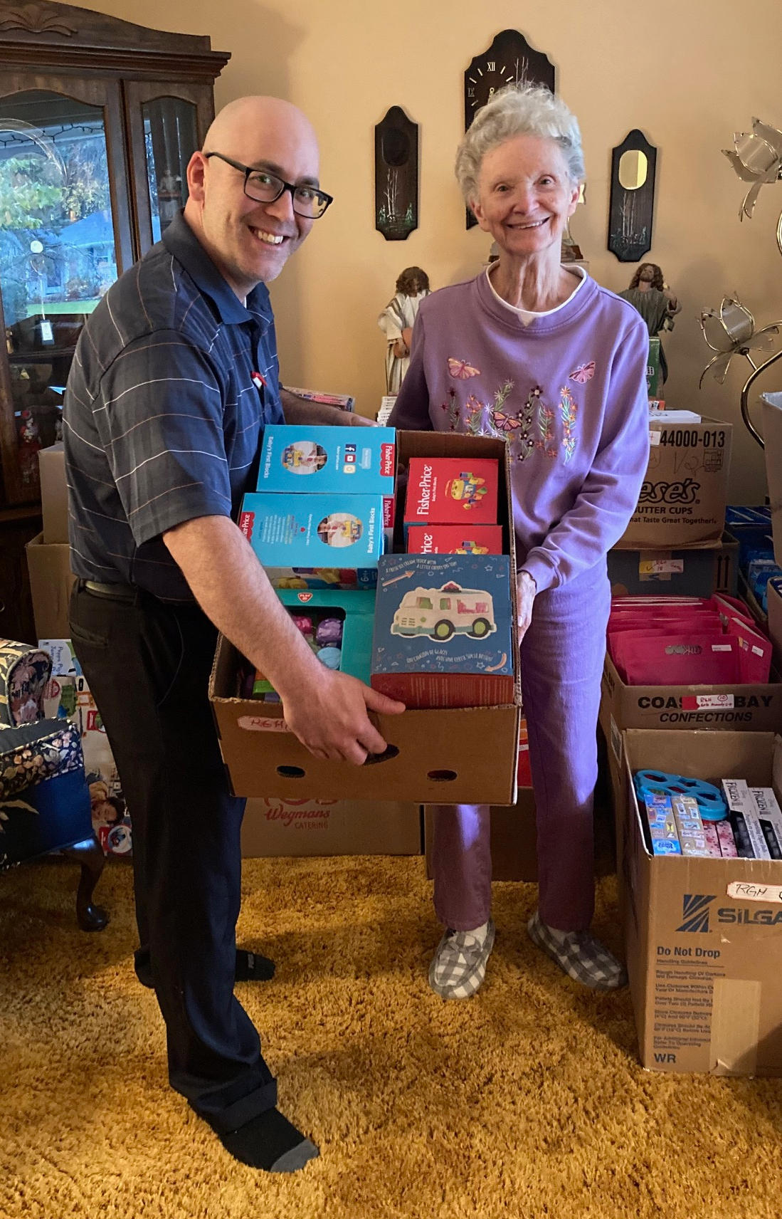 On my my recent visit a few days ago, Florence told me that a donation she’d received on Tuesday night had put her over her goal, just in time for her volunteer “elves” to swoop in and start packing the toys and clothing items for delivery to agencies all over the Rochester area.