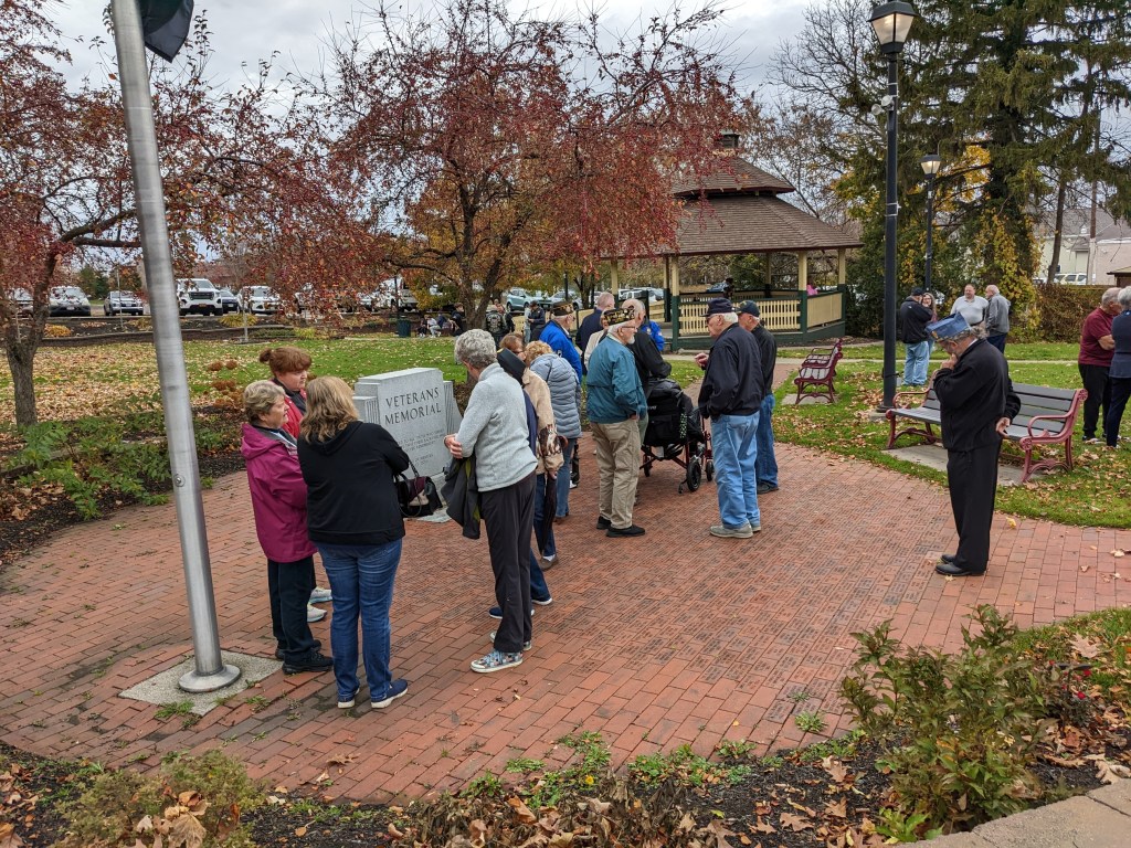On Friday Nov. 11, Town of Webster Deputy Supervisor Patti Cataldi and Cherie Wood, from the Daughters of the American Revolution, Canandaigua Chapter, attended the Veteran’s Day ceremony held at the Maplewood nursing home. They made the trip especially to present a Certificate of Appreciation to Maplewood resident Marie Gyles.