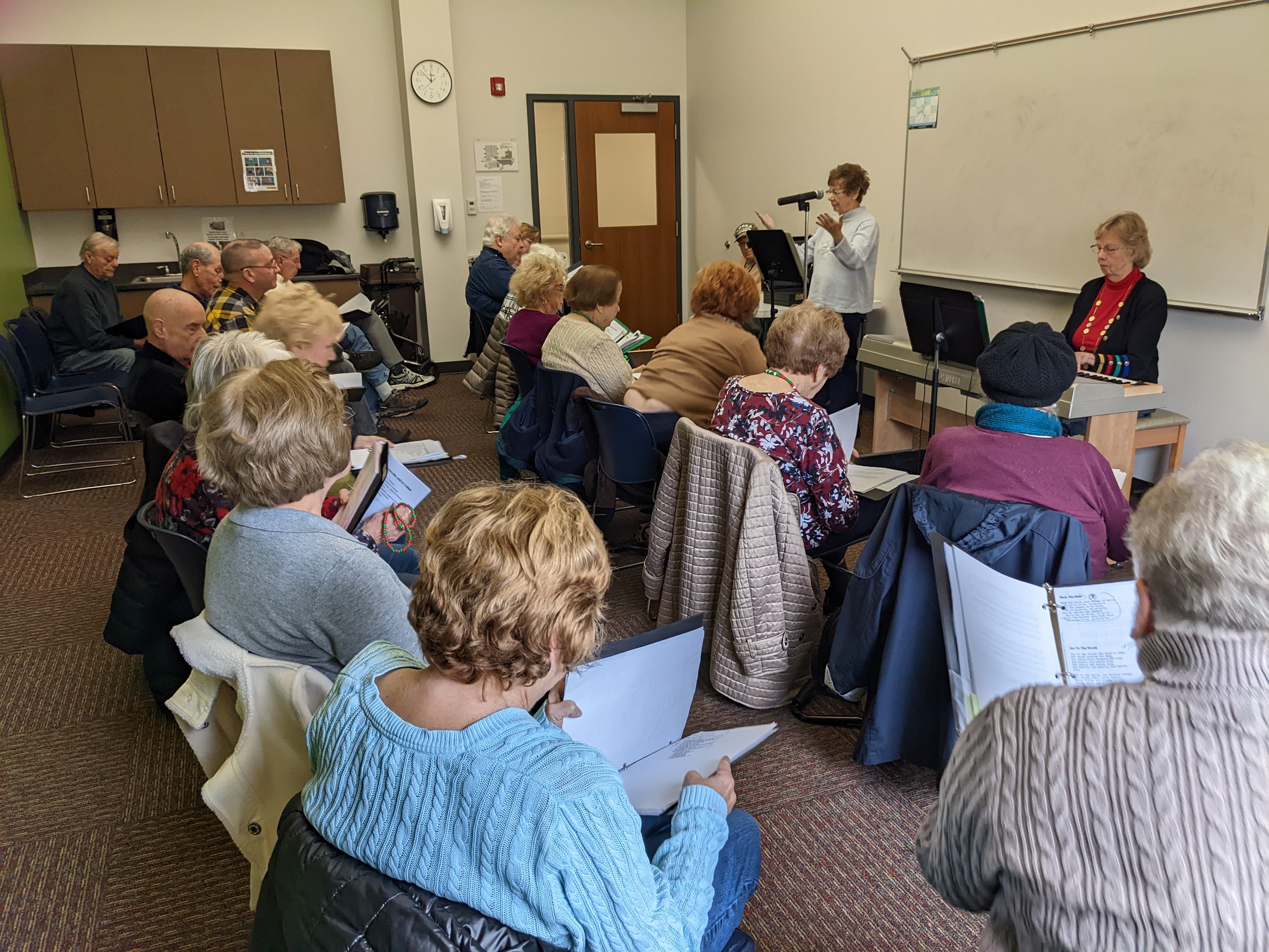 “We used to have a director from Hochstein,” Sylvia remembered. When she didn’t return, “I went in to (Senior Coordinator Daphne Geoca) and said, ‘I’m a musical director. I’d be very happy to volunteer my time.'” Since then, the group has become stronger than ever, boasting about 25 members.