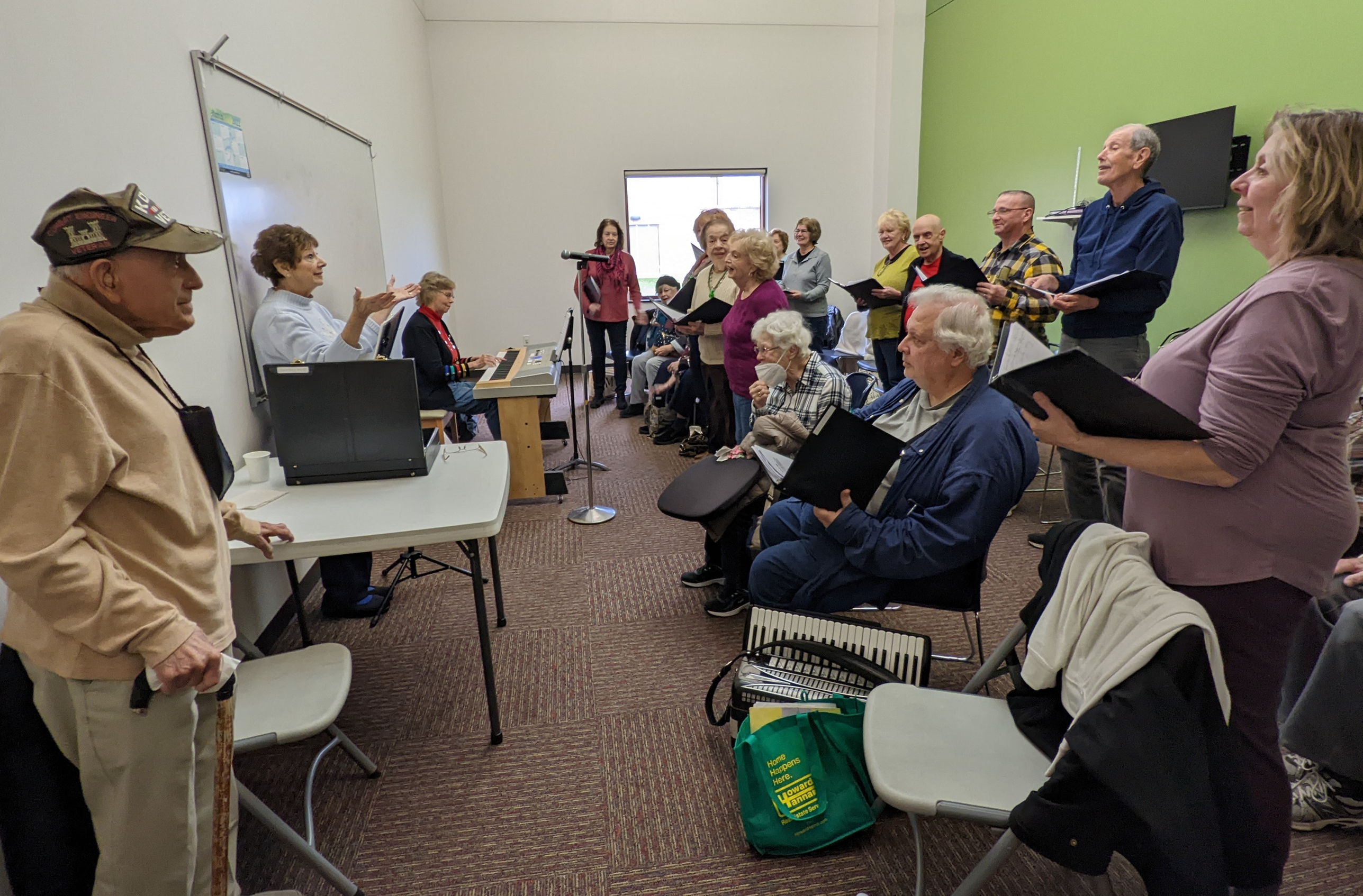 For almost 40 years, the Senior Singers have offered older adults a no-cost, no-stress opportunity to rehearse and perform music. Comprised of both men and women 55 and over, the group rehearses every Tuesday at 11 a.m. in a small room at the Recreation Center from September through June, taking two months off during the summer. And two or three times a year, especially before their summer break and at holiday time, they move into the Center’s large multipurpose room to present community concerts, performing Broadway show tunes, old standards and holiday favorites.