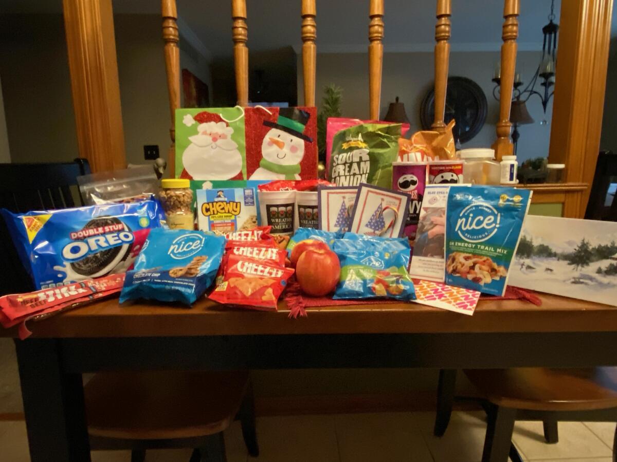 Webster Union Cemetery and the Blue Star Mothers have put a thank-you bag together for our driver, filled with snacks, Dunkin’ Donuts gift cards, nuts and everything in between. Location Coordinator Cherie Wood said that it’s kind of got “the entire junk food aisle of Wegmans” in it and weighs about 20 pounds.