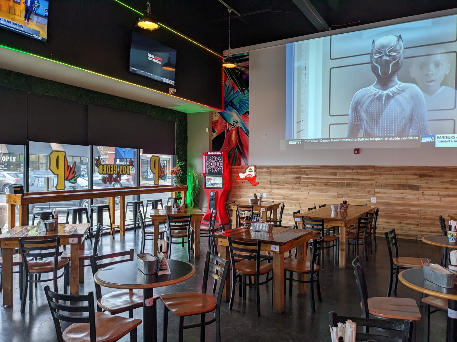 This is actually the second Don Pedro in Rochester. The first, now closed, was downtown on East Ave. That Don Pedro, however, was first and foremost a restaurant, whereas this new location is most definitely a sports bar. It’s a smaller, more intimate space than the 10,000-foot East Ave. restaurant, making it more amenable for friends to gather for a few beers and some wings and to watch the game. It boasts 11 large-screen TVs and a huge 40′ by 30′ screen at one end of the room. It’s the largest one I’ve seen pretty much anywhere.