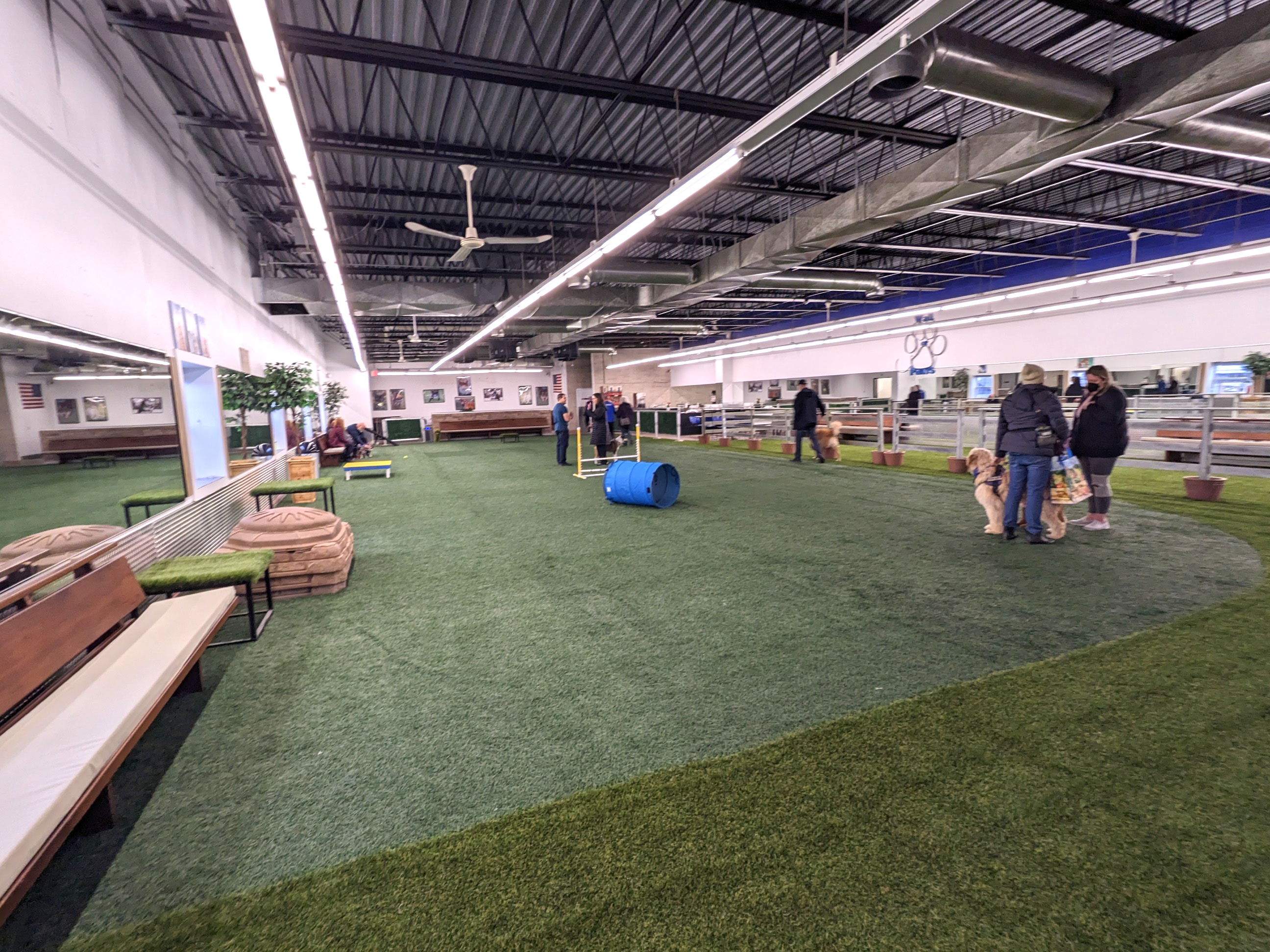 When I stopped into Woof’s Canine Club and Indoor Dog Park on Thursday, things were still in significant disarray. So I was pleasantly surprised on Saturday, when I went back for the grand opening celebration and saw an amazing transformation and an impressive facility.