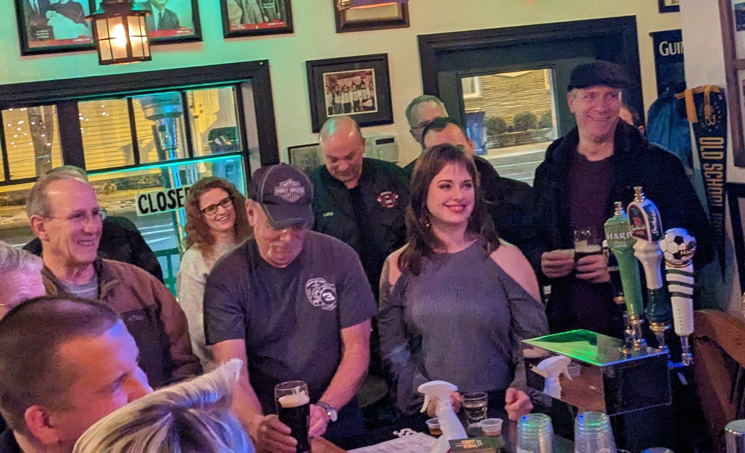 Last night was no exception, but the occasion was rather exceptional. Saturday night’s whiskey toast was to our Webster firefighters, and the occasion was to present a $1,000 check to the Webster Volunteer Fire Department (WVFD), a portion of the proceeds from last August’s Barry’s Irish Festival.