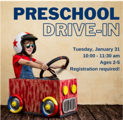 The annual Preschool Drive-in is happening this year on Tuesday Jan. 31 from 10 to 11:30 a.m. The morning will begin with decorating the kids’ box cars, followed by a drive over to the community room to watch a short movie. You can even bring the car home. The program is open to children ages 2 to 5. Registration is required, and boxes (I mean, cars) are limited.