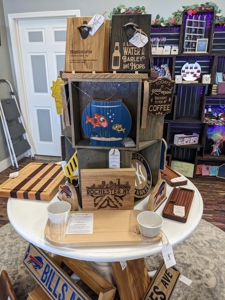 Holly opened Holly-Wood Decorative Creations last May, after beginning her own online woodcraft and home decor business during the COVID shutdown. When the world began to open up again, she started showing her work at art and craft festivals. There, she got to know many of the other vendors, and they would talk about the difficulties of selling their products in local shops.
