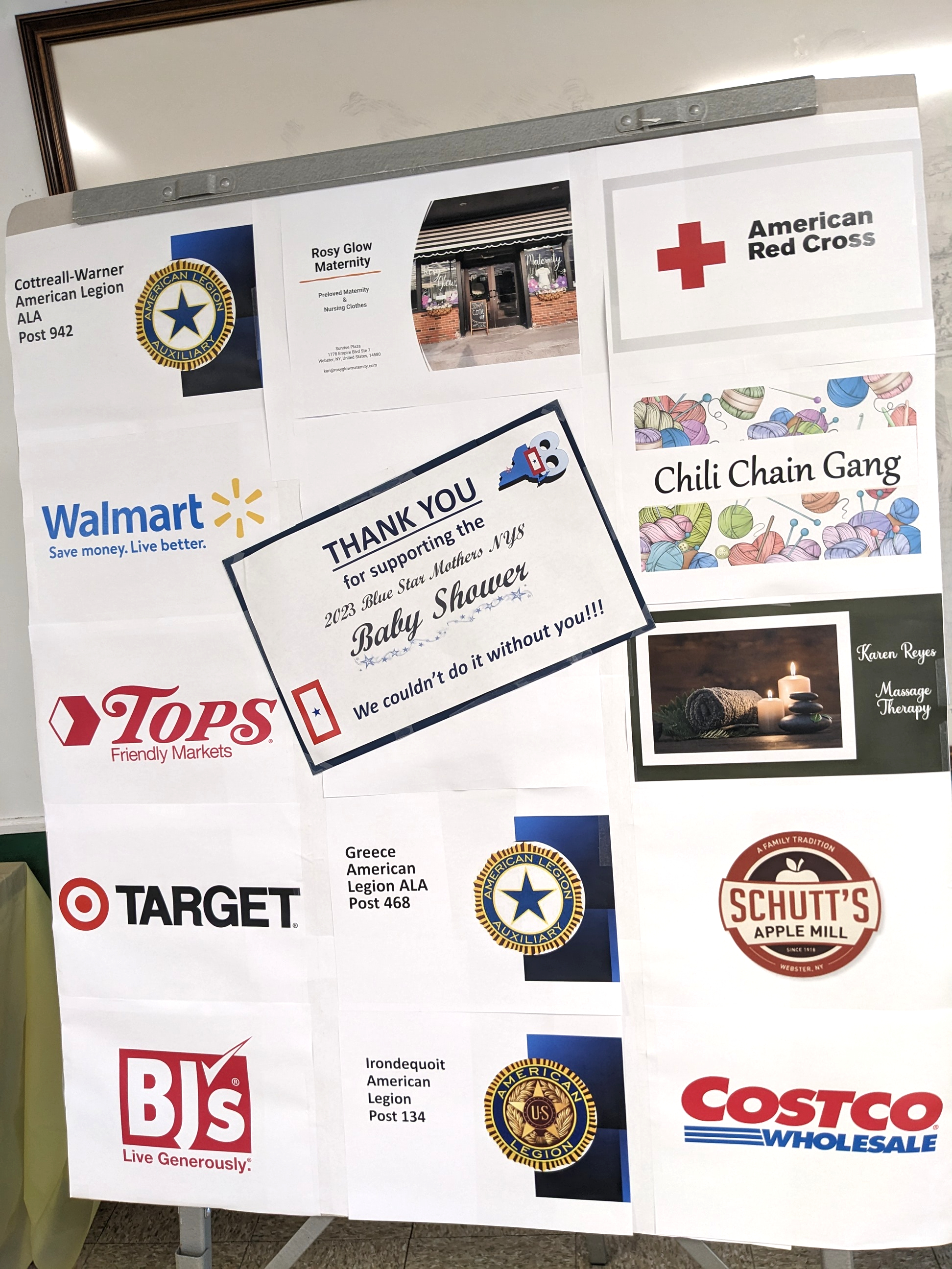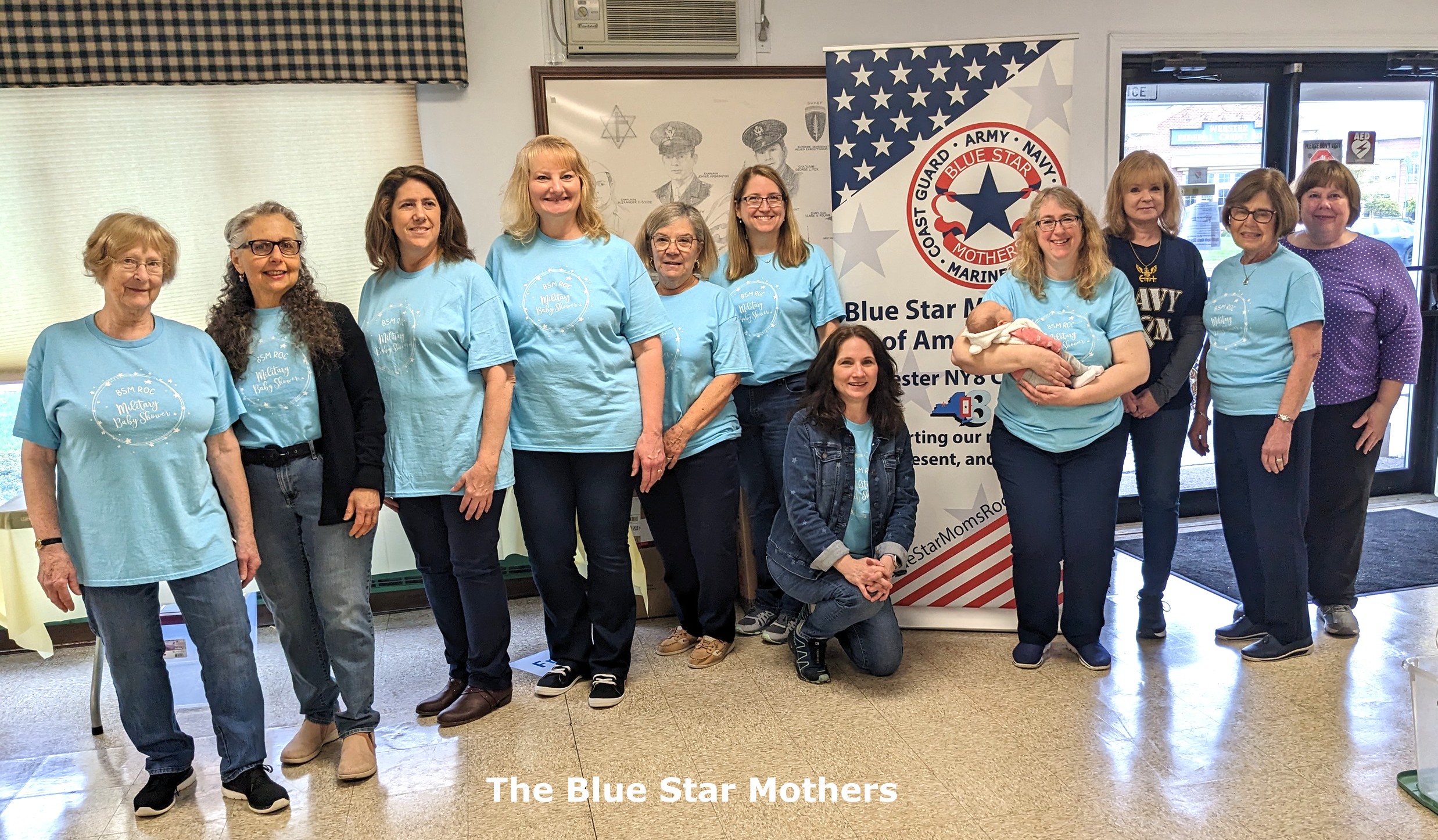 Blue Star Mothers are mothers, stepmothers, grandmothers, foster mothers and female legal guardians who have children serving in the military, guard or reserves, or children who are veterans. The Baby Shower for Military is one of the most important service projects of the Blue Star Mothers Rochester Chapter.