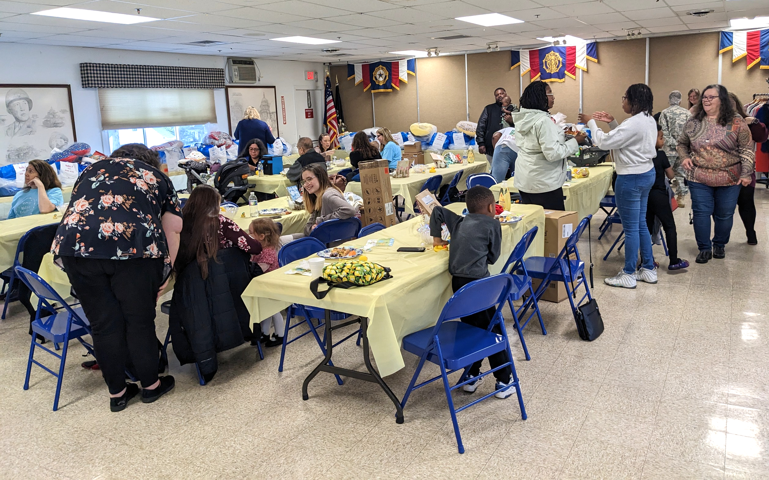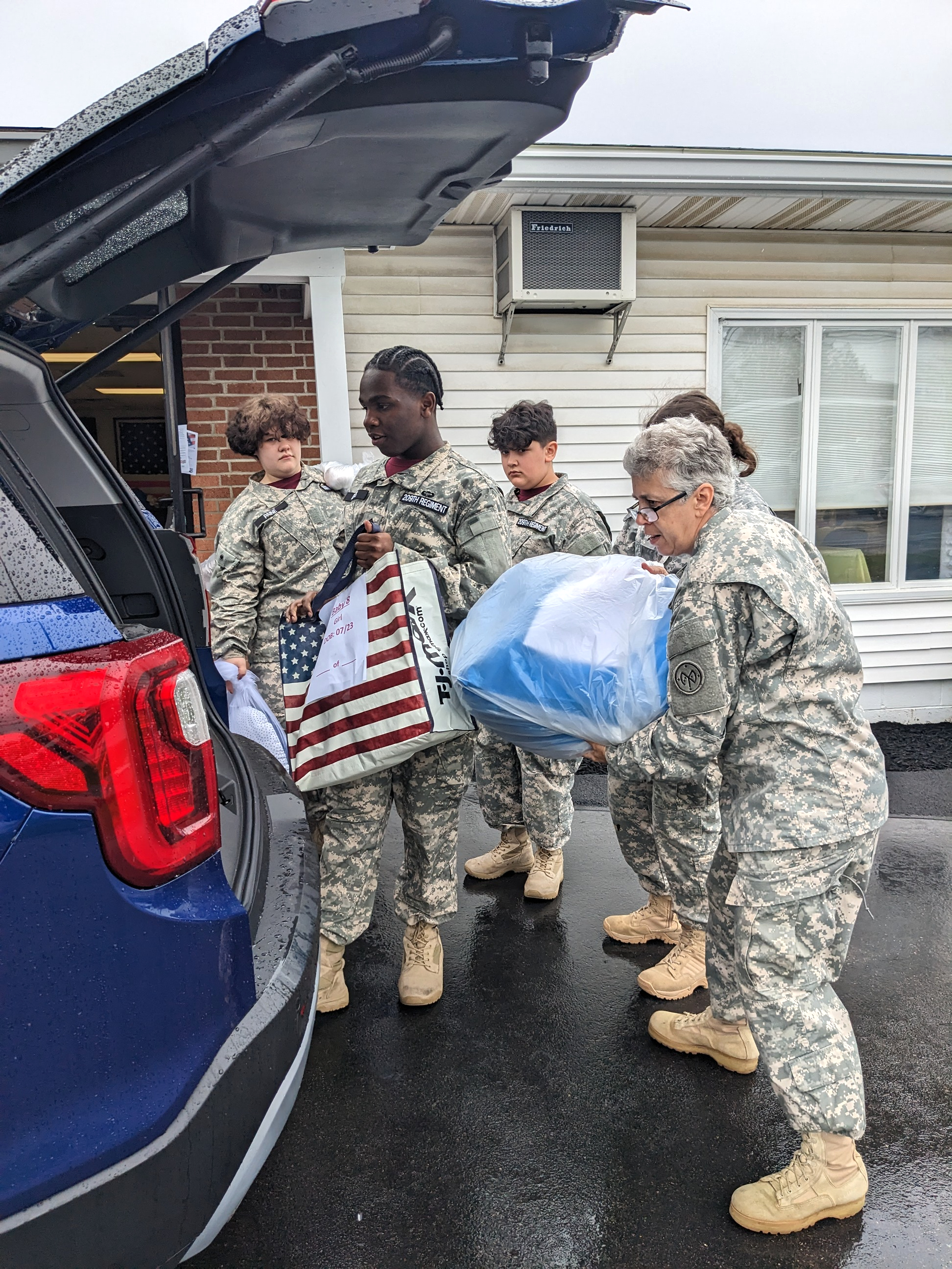 Several members of the 209th Regiment of Cadets were also on hand to help set up tables, put all the bags out, and carry items to cars when the mothers headed for home.