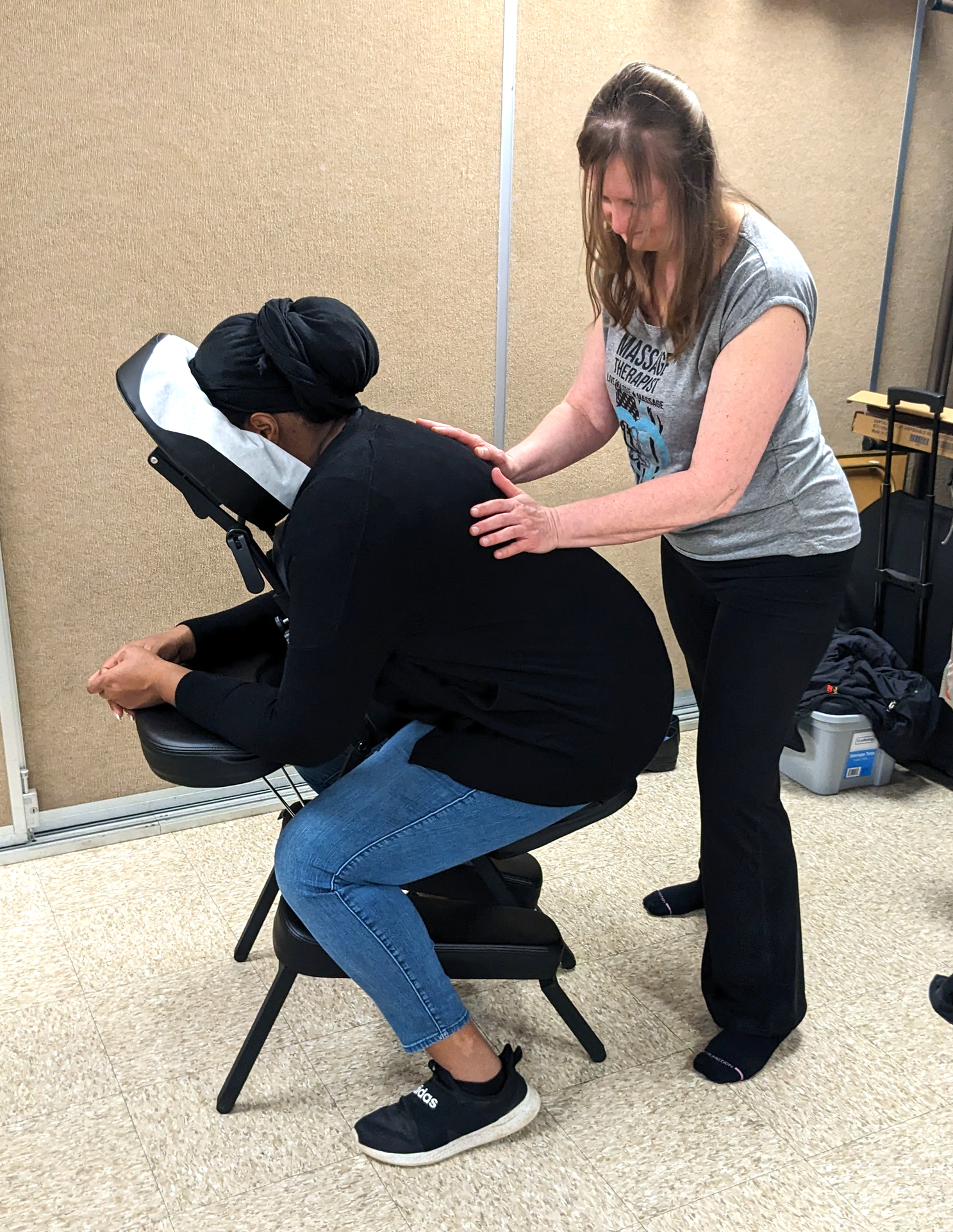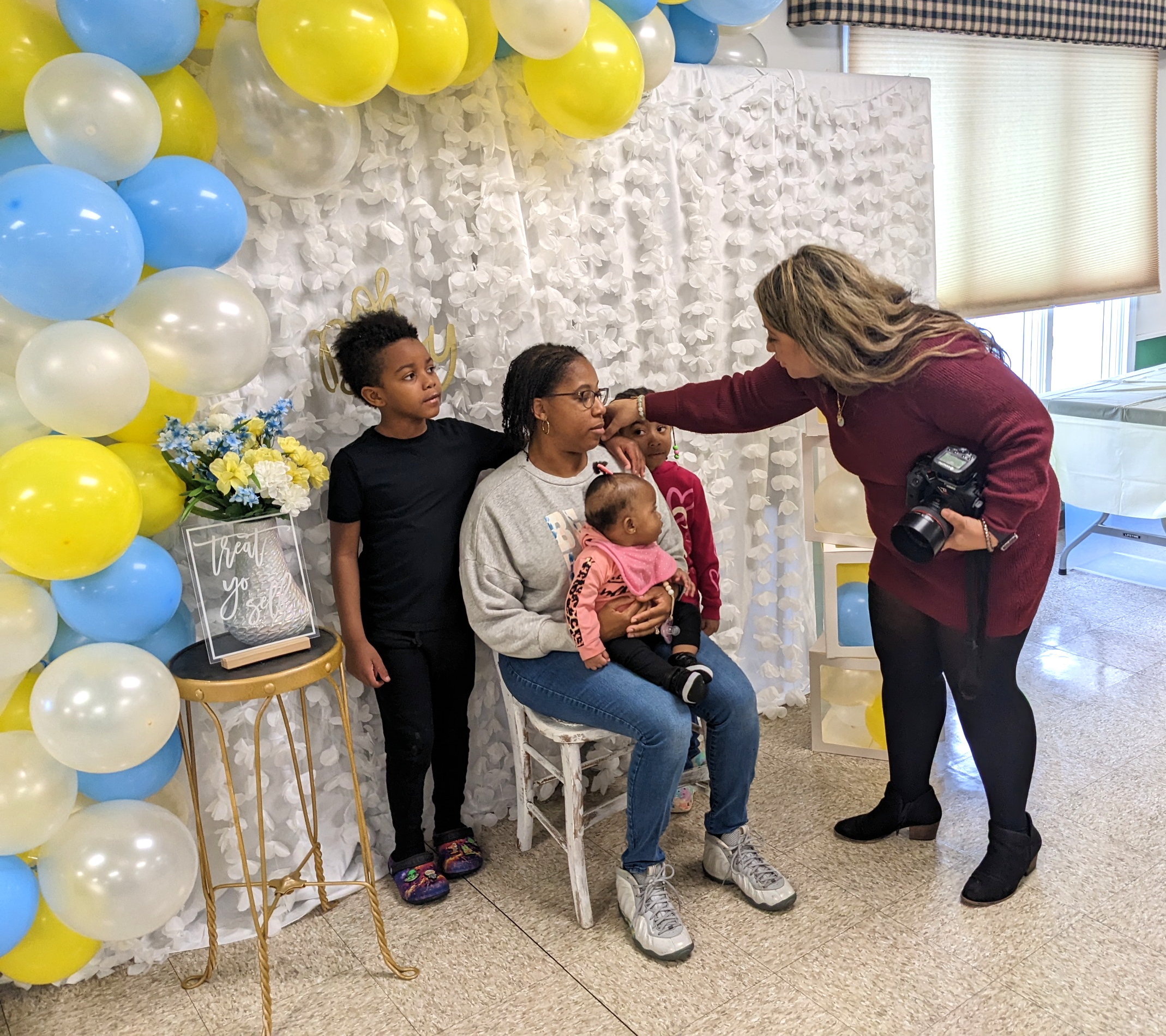 While the annual Military Baby Shower is organized and coordinated by the Blue Star Mothers Rochester Chapter, it truly is a community effort. The group’s members have been collecting items for months in preparation, fanning out to local businesses to solicit donations of food, baby products or gift cards. Individual community members went online to the Blue Star Mothers’ Amazon wish list and purchased larger-ticket items like Diaper Genies and strollers. And at the actual baby shower on Sunday, three local small businesses — Rosy Glow Maternity, Artistic Boutique and Studio, and Karen Reyes Massage Therapy — volunteered their time to make the day even more special.