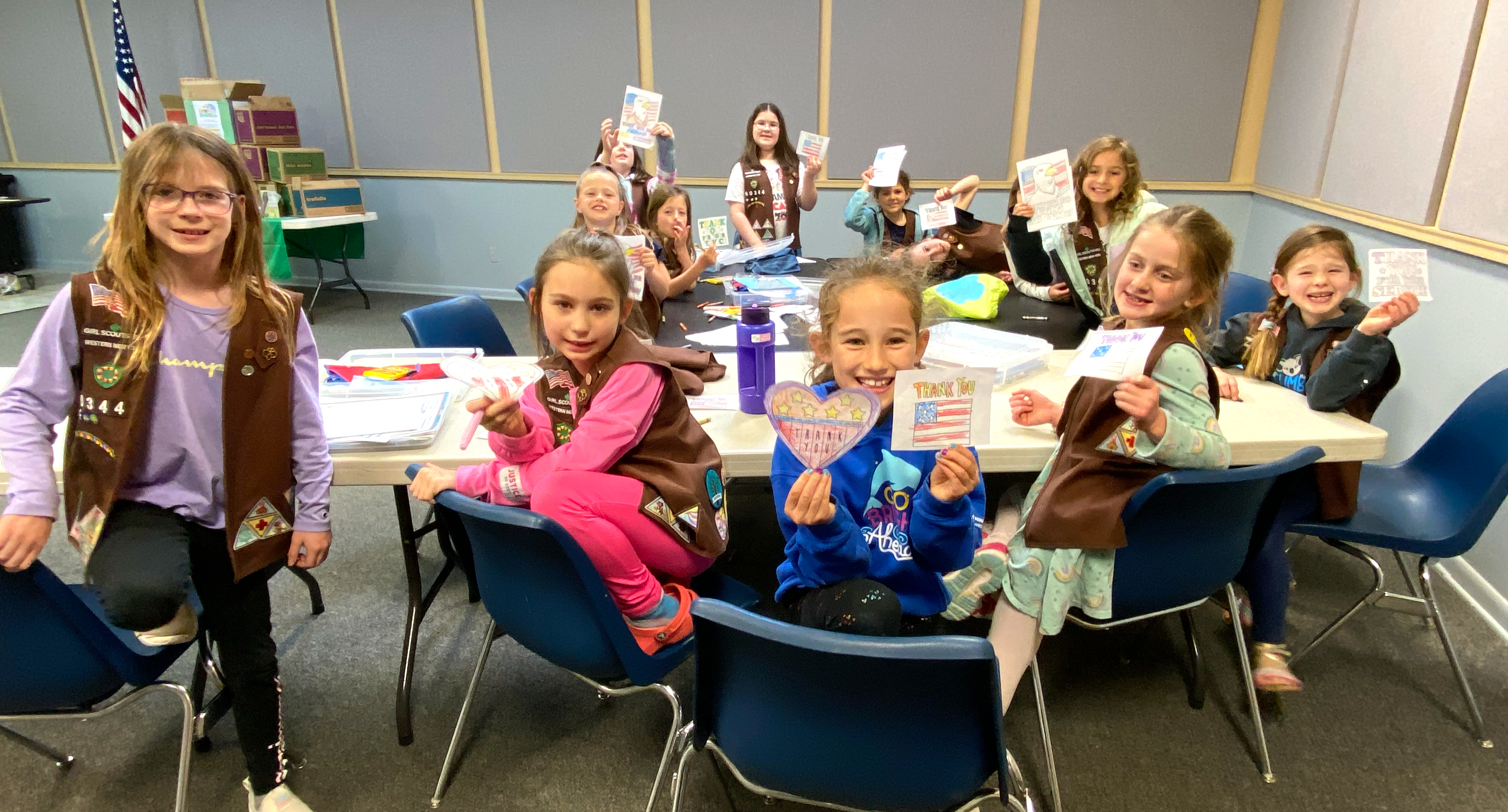 During this year’s Girl Scout Cookie season, which just concluded, the 13 second-graders of Troop 60344 set an ambitous goal: to encourage their customers to purchase 200 boxes of cookies to be donated to the Blue Star Mothers Rochester Chapter NY8, to be included in military care packages being mailed in June.