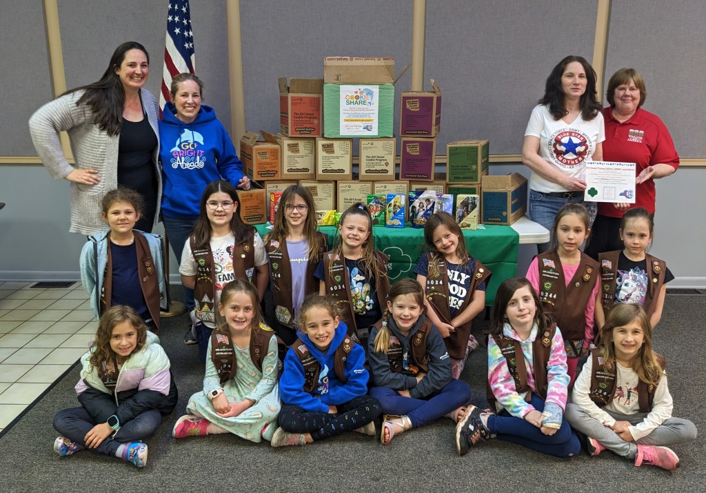 Thanks go out to all of the community members who stopped by the troop’s cookie tables this season and dropped some extra cash, and also to Canandaigua National Bank for helping put the girls over their goal by donating enough money to purchase 60 boxes.