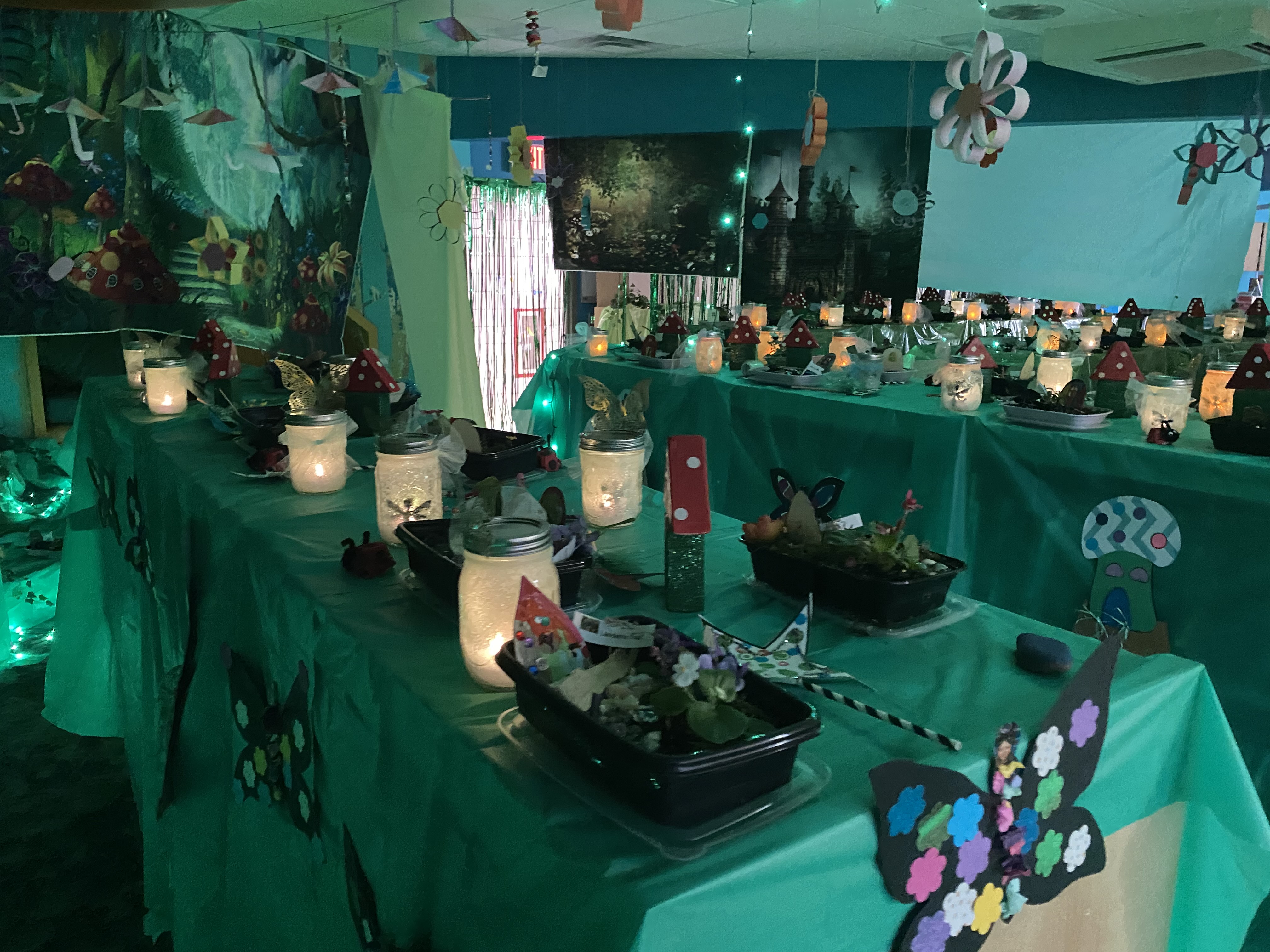 This year, Smith invited the entire school to take part in the magical festivities. The response was heartwarming. Individual grade levels embraced the challenge to make different parts of the fairy trail; fourth graders made flowers to hang from the ceiling. First graders made stepping stones, UPK students made ladybugs and butterflies, OT students made beaded raindrops and umbrellas, and the kindergartners made fairy gardens and fairy jars.