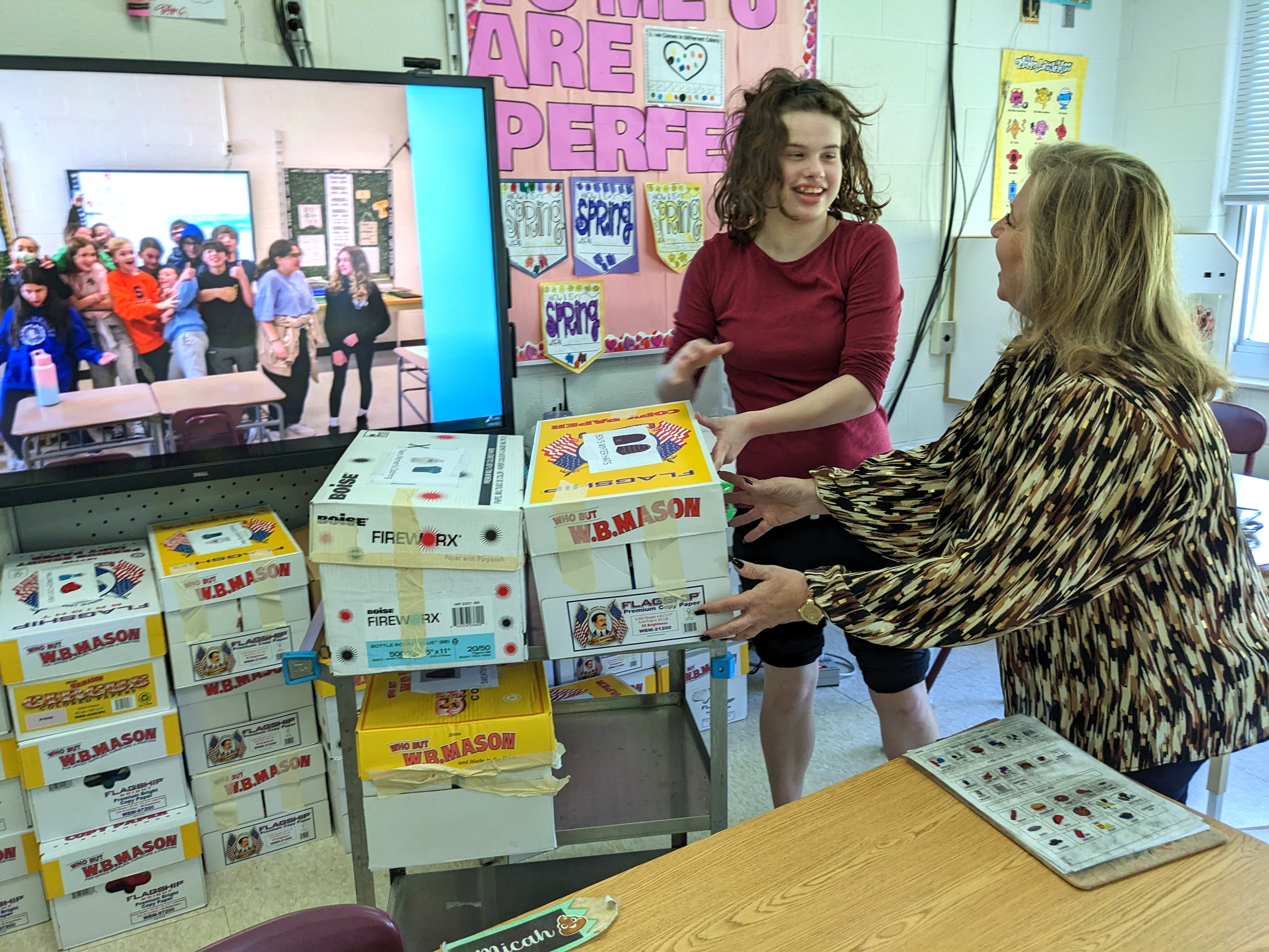 Cori Horn’s 12:1:4 functional life skills class at Willink Middle School has come up with a perfect, win/win solution. Two times a year, Cori and her students launder, sort, fold and pack countless items collected from nine schools, then deliver them all to Webster HOPE on East Ridge Rd.