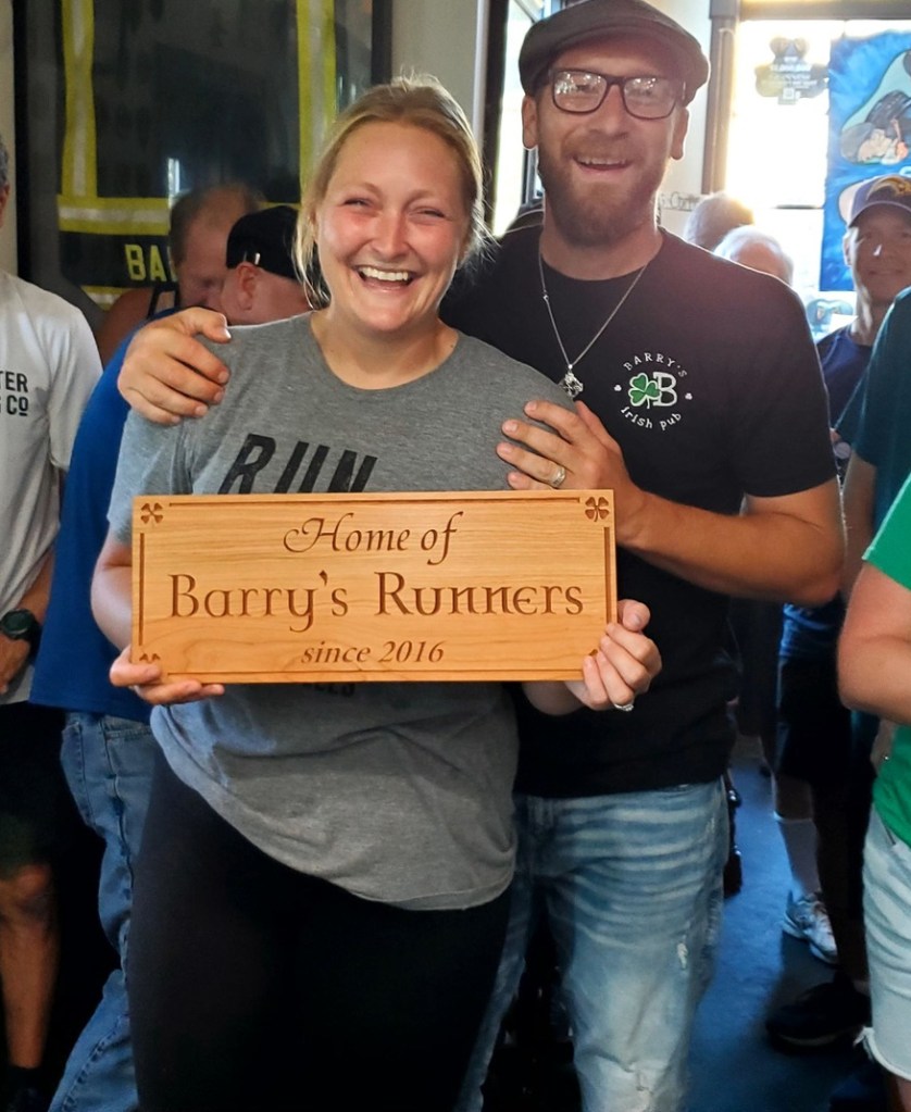 Those of you who know and love Barry’s as much as I do (and if you’ve read this far, that’s you), you recognize a lot of these memories. Sure, there have been many changes through the years. The couch and fake fireplace are gone, the furniture has been swapped out a few times, trivia night was added, and Barry’s Runners was established, just to name a few. Dear old friends have moved away or passed away, and so many new friends have discovered the pub that it’s hard to find a place to sit most nights.
