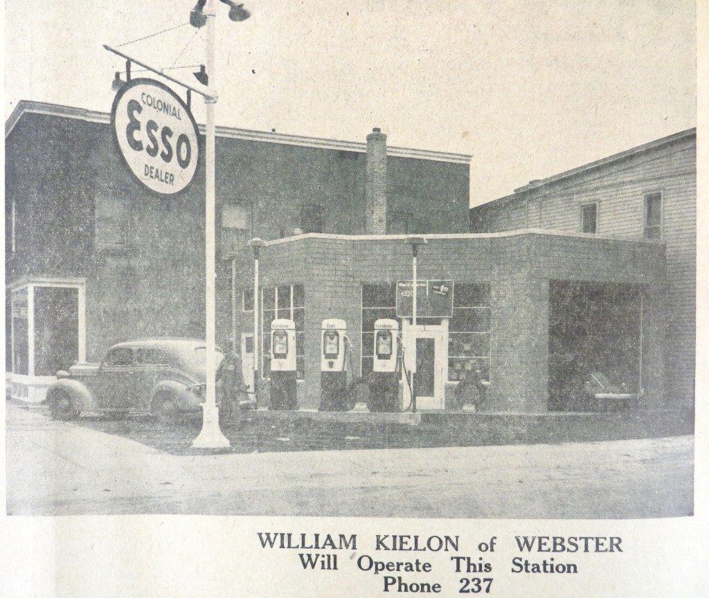 The beautiful cobblestone building was eventually demolished to make room for a ESSO Service Station, operated by William Kielon, owned by Webaco Oil Co. Mark P. recently noted that the Esso station became a Cities Service station in the early 60s, adding, “I used to marvel at the ‘grease monkeys’ who stood underneath the cars that pulled into the garage, parking over the pit where the mechanics would perform an oil change and lube job.”