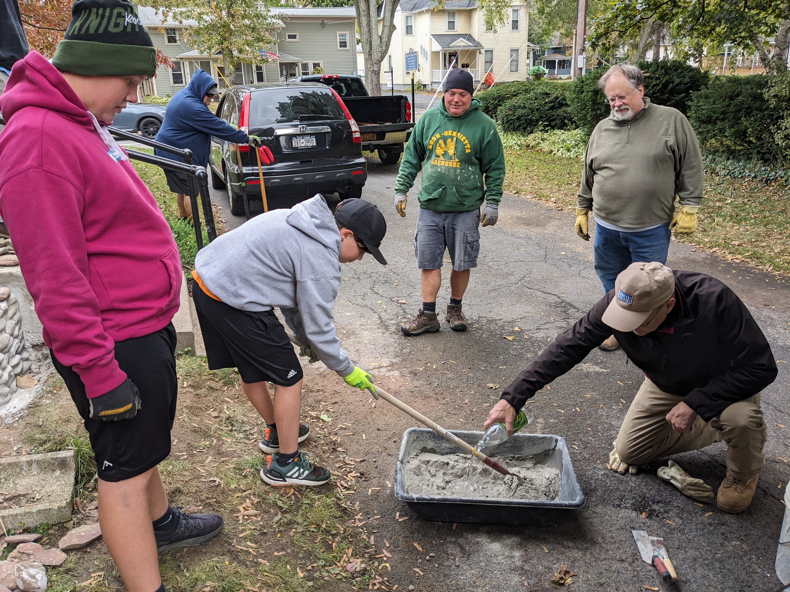 But overcoming obstacles is all part of completing a successful Eagle Scout project. (And learning new things like how to mix concrete and build a retaining wall.)