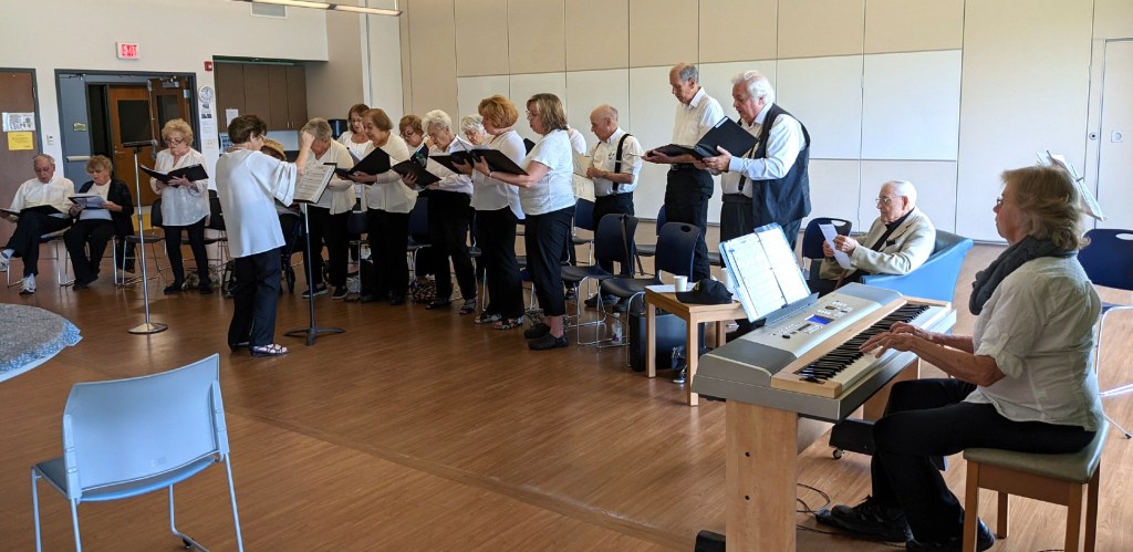 The Senior Singers is a lively group of older adults who come together at the Rec Center every Tuesday to rehearse and perform music. There’s no cost; they just do it for the love of music. (If you want to read more about them, click here to see the blog I wrote.)