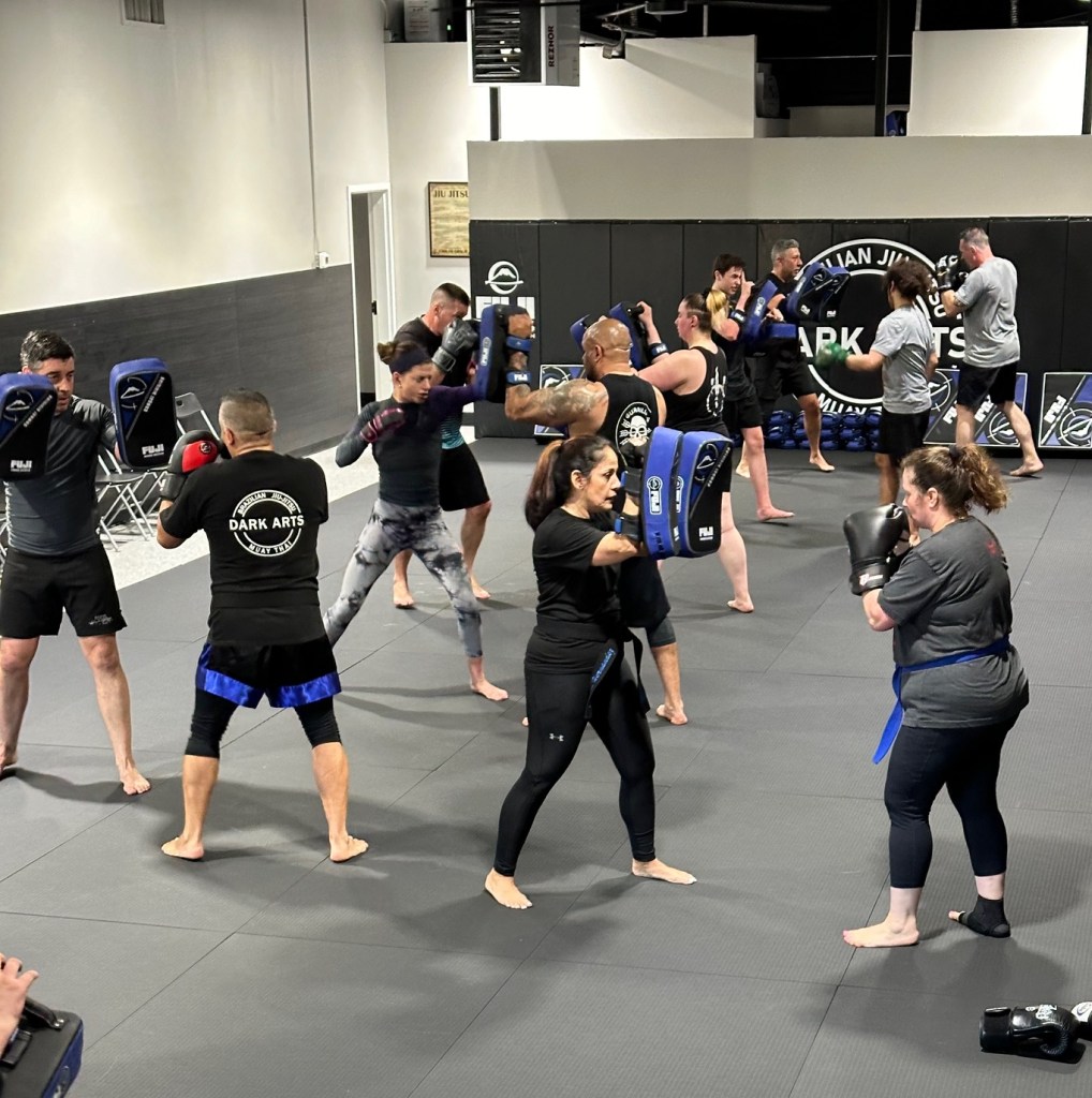 Plus, Juan said, “We’re big into empowering women,” so Dark Arts also offers a ladies-only jiu jitsu class, and a monthly self-defense class.