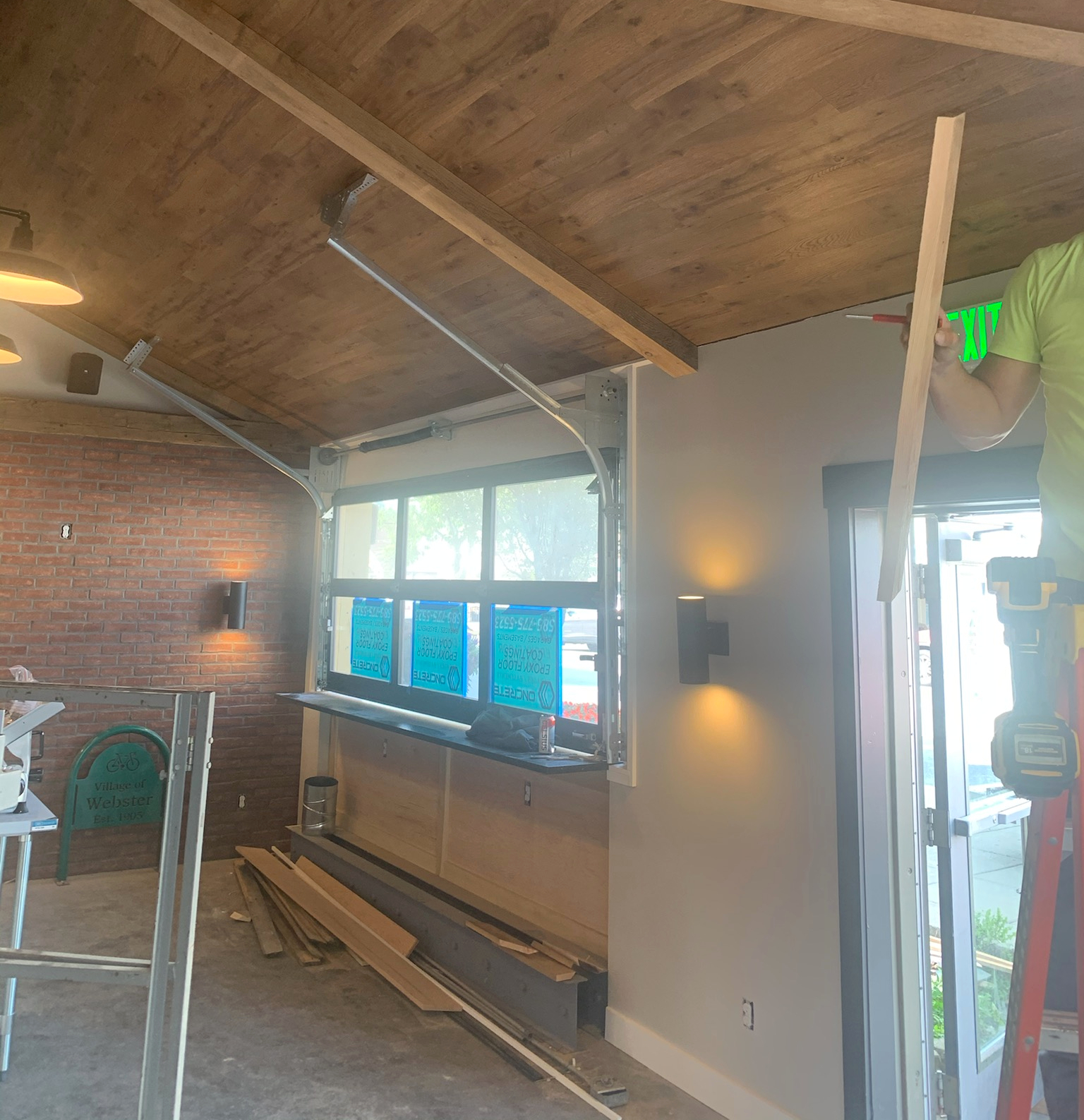 For sure a LOT has been accomplished over the last few months. All of the electrical and plumbing work has been finished; there’s new drywall, insulation, ceiling and floor; the bar and footrest are in place; the jukebox, speakers and TV are up; the liquor license has been approved and the menu is ready to be printed. But as is often the case with any big remodeling project, when one project gets finished, often another one pops up that you didn’t expect.