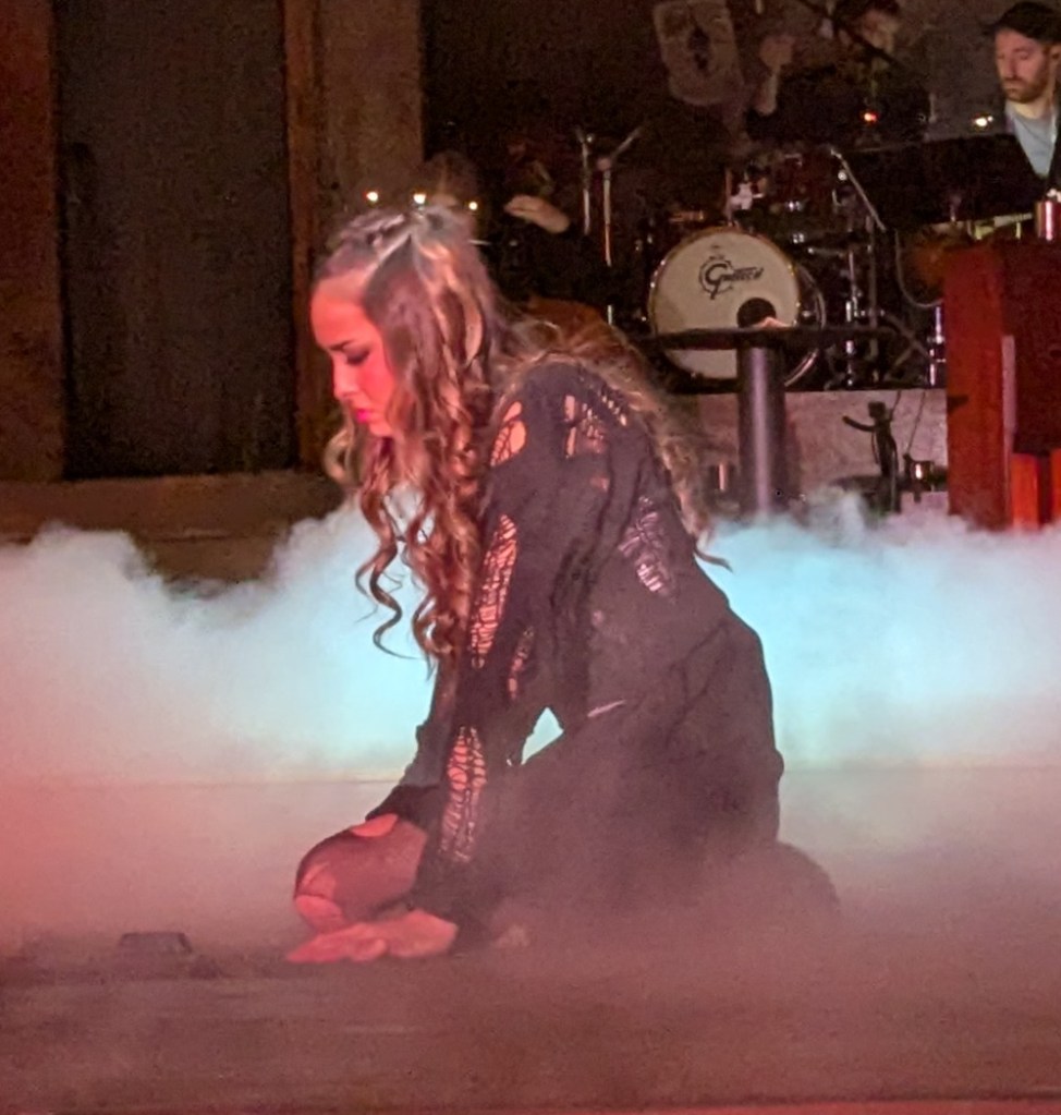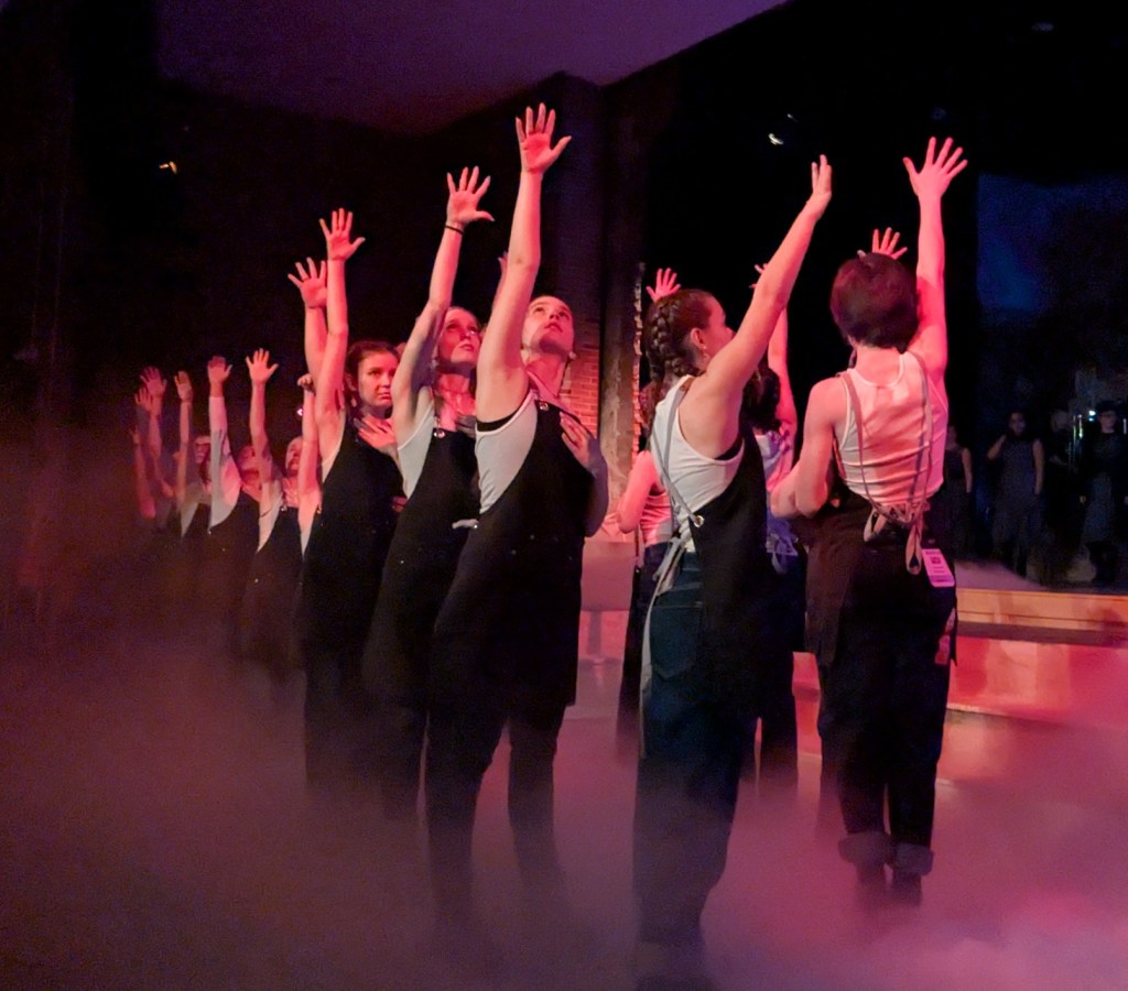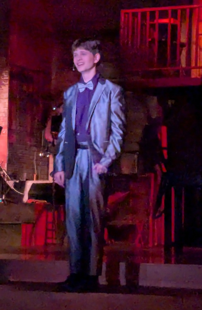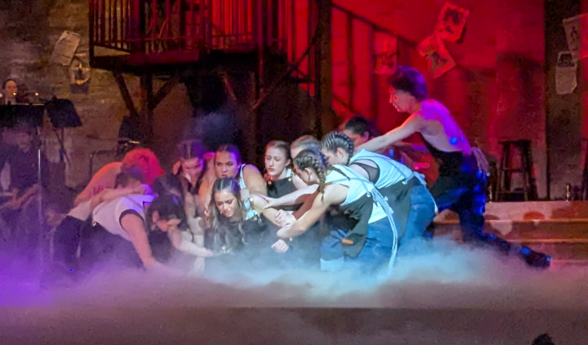 Those examples are just the tip of the iceberg when it comes to the hard work these young actors have been putting in to bring Hadestown to the stage. (And they are young. For many of them, this is their first Schroeder production.) From the powerful opening song, to the lilting love ballads, to the jarring underworld chants, the music is challenging, but the harmonies are breathtaking. The choreography and staging are complicated but delivered without a hitch.