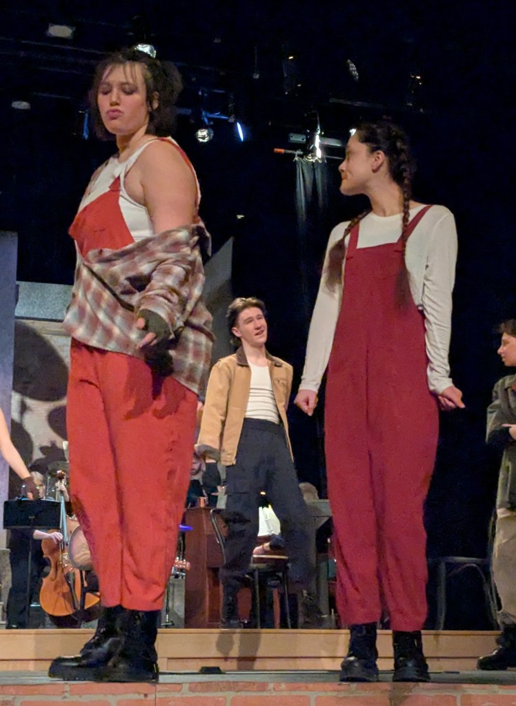 The three Fates also have instruments assigned to them: a violin, a tambourine and an accordion. Most high school productions would have the instruments on the characters but have professionals play the parts while the characters mimic the playing…..not Webster Schroeder! Both Fate #1 and Fate #3 self-taught their violin and accordion parts. Their playing on stage is legit.