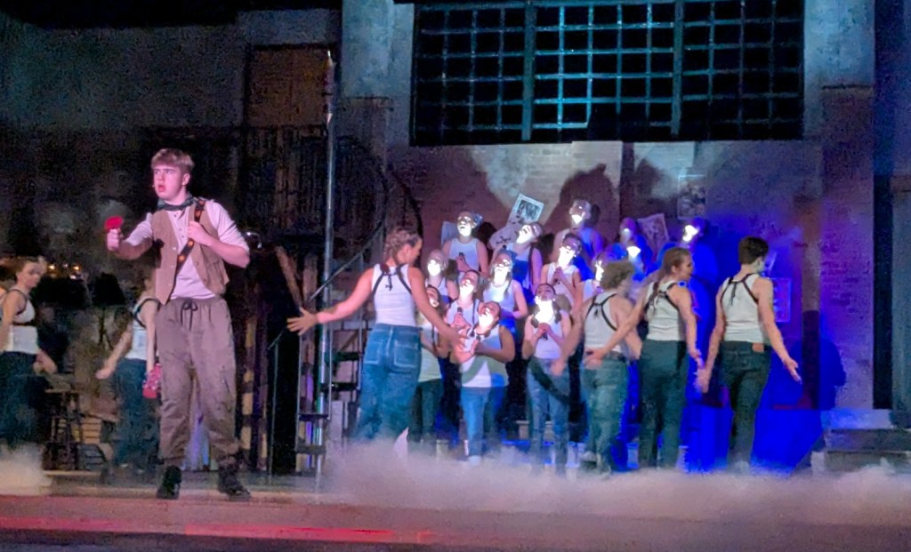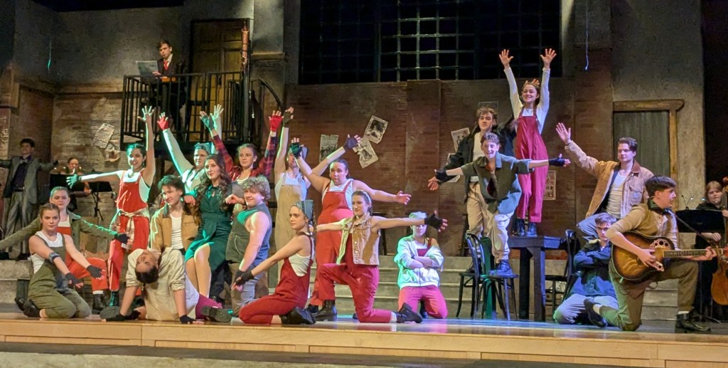 I know, I know … that doesn’t sound like your typical high school musical. For sure it’s not as lighthearted as Mary Poppins or Seussical. But despite its darker themes, audience members will be equally captivated by the acting, choreography, music and staging. Because this is a Webster Schroeder production.