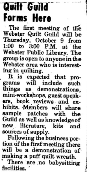 The Village Quilt Shoppe is located at 21 East Main St. in the Village of Webster, at the corner of Lapham Park.