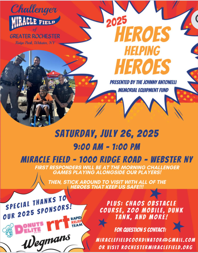 Participating trucks include Bruster’s, Eat Greek, Macarollin, Mr. Squeeze, Rob’s Kabobs, Roc City Sammich and Tuscan Wood Fired Pizza. The event will also feature artisan vendors, a kids’ play place, face painting, plus a 50/50 and vendor raffles.
