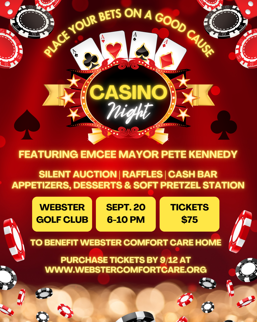 The Webster Comfort Care Home’s annual Casino Night has been scheduled for Saturday, Sept. 20 from 6 to 10 p.m. at the Webster Golf Club, 440 Salt Rd.